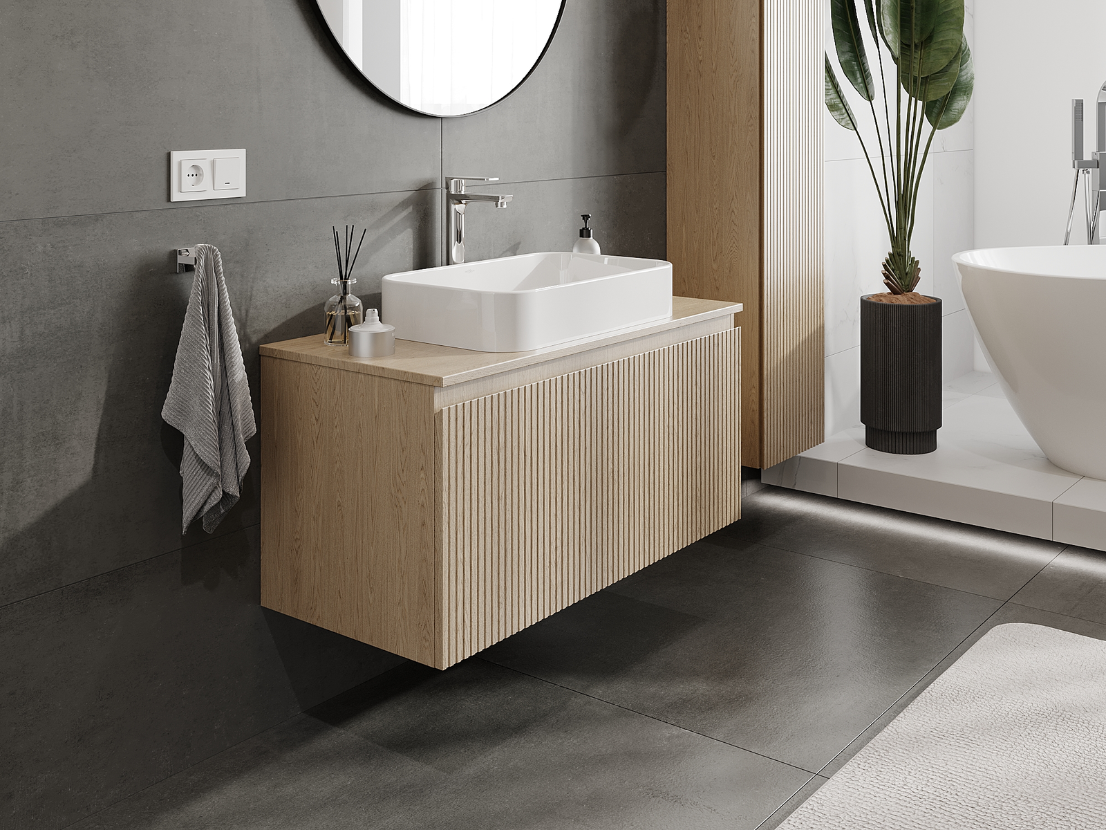 Корпусът на шкафа се доставя напълно сглобен, което означава максимално удобство и спестяване на време. Не е нужно да губите часове за сглобяване на мебела – просто го монтирайте на избраното място в банята. Това е идеалното решение за хора, които ценят бързия монтаж и незабавния ефект.