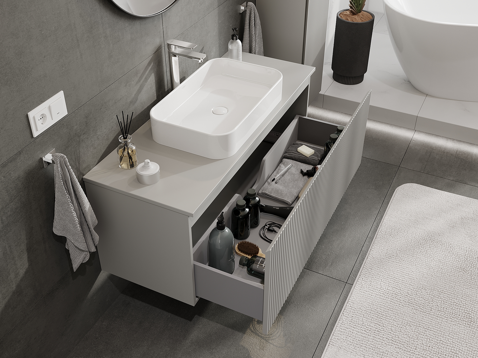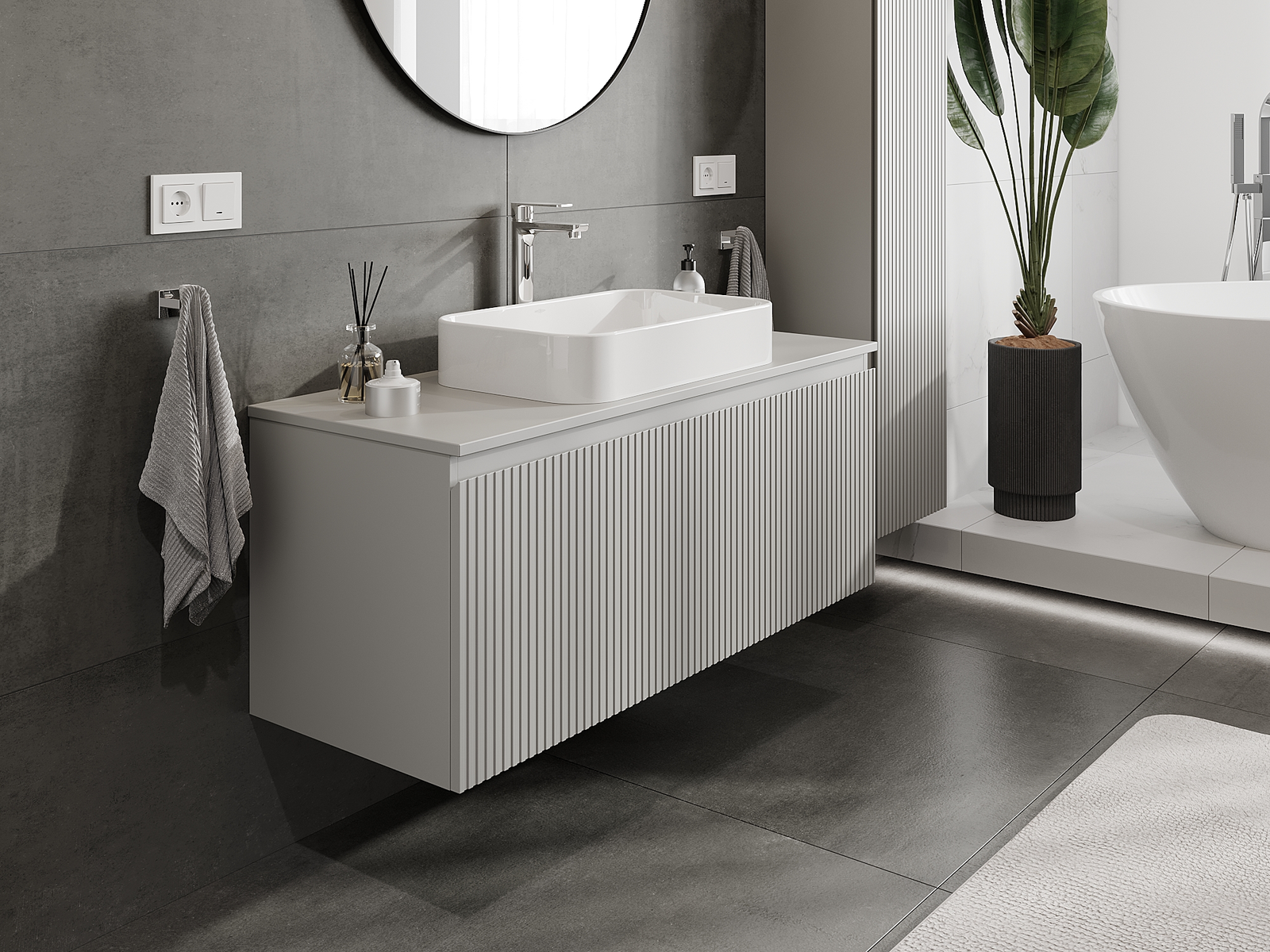 Нашите модулни мебели за баня могат да се комбинират в различни цветови конфигурации, което позволява пълна персонализация. Може да се избере както външният вид, така и функциите на отделните елементи, което позволява съчетаване на мебелите със собствените стилови и функционални предпочитания.