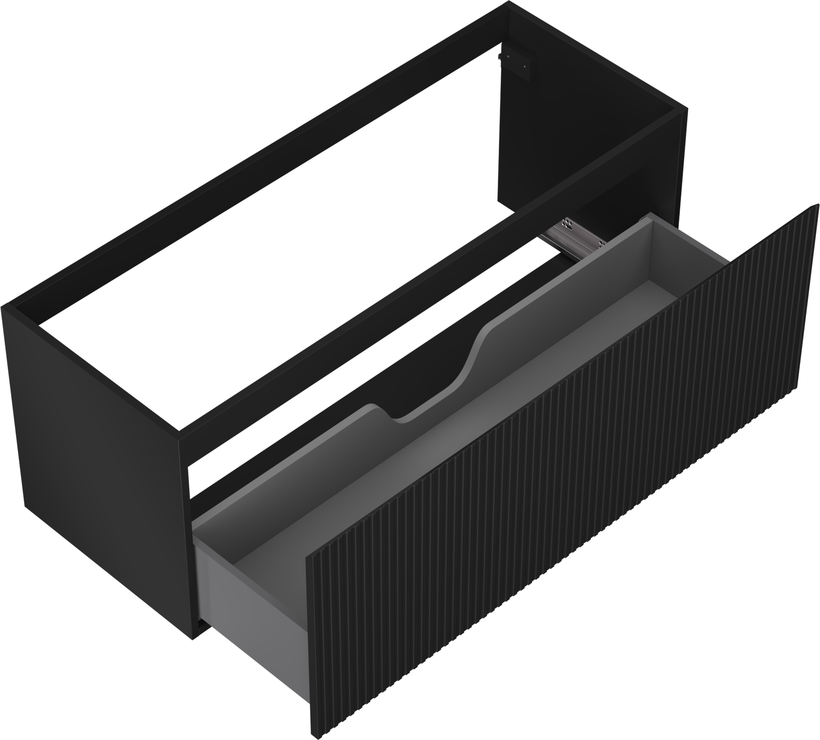 Изрезът в чекмеджето е проектиран по такъв начин, че да побере сифона, който е необходим в мивковите инсталации. Благодарение на това мебелът може да бъде монтиран напълно функционално, без да се налага отказване от пространството в чекмеджето заради инсталацията.