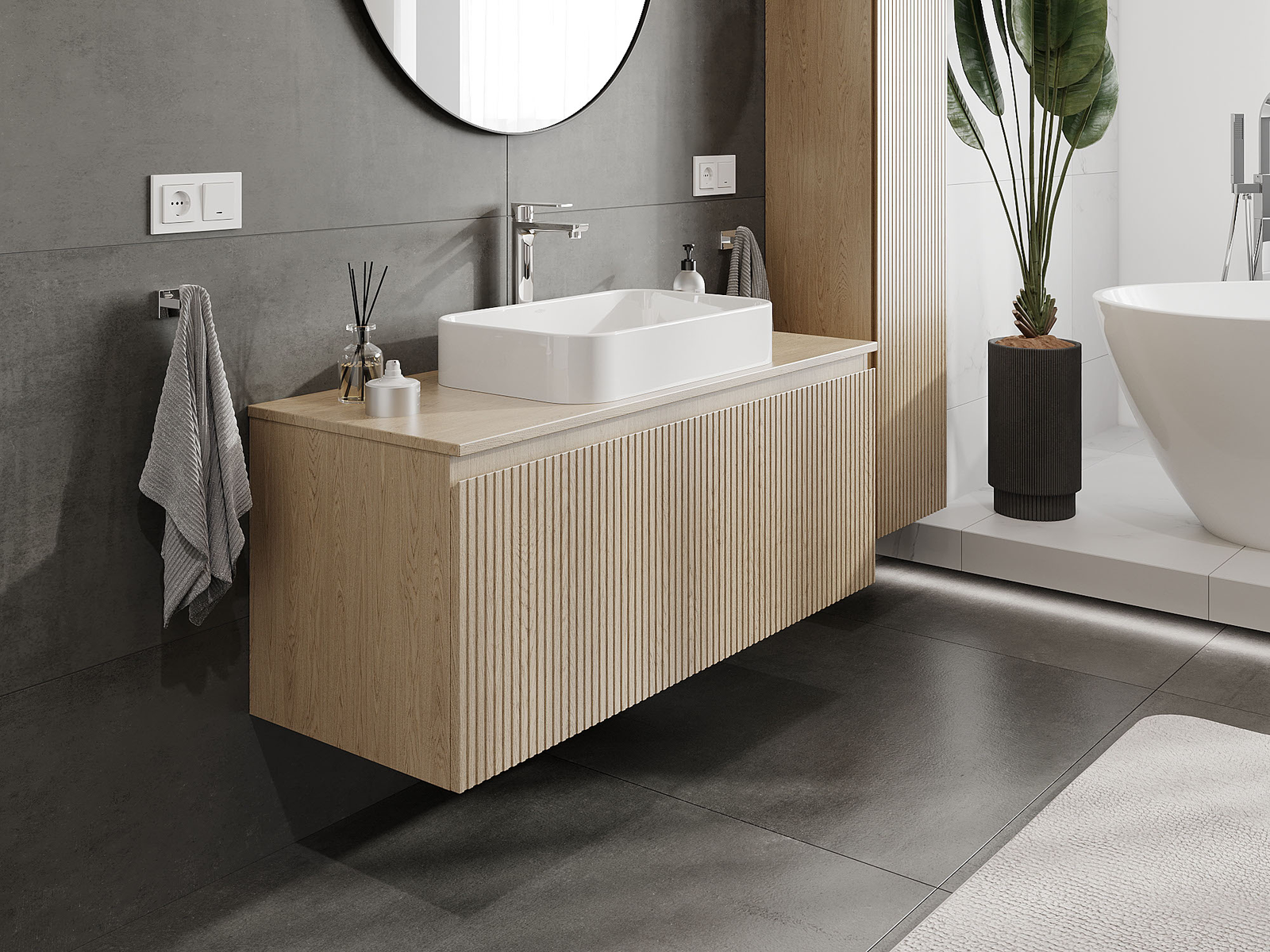 Корпусът на шкафа се доставя напълно сглобен, което означава максимално удобство и спестяване на време. Не е нужно да губите часове за сглобяване на мебела – просто го монтирайте на избраното място в банята. Това е идеалното решение за хора, които ценят бързия монтаж и незабавния ефект.