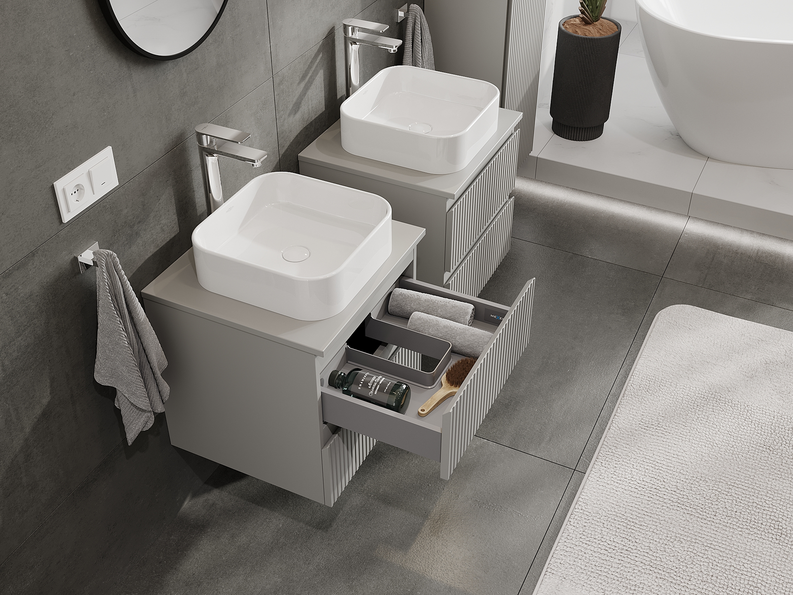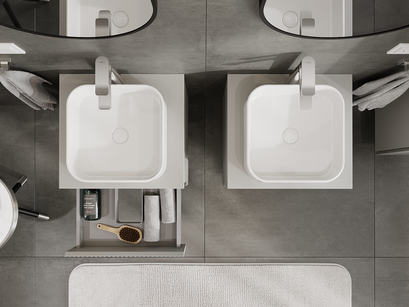 Нашите модулни мебели за баня могат да се комбинират в различни цветови конфигурации, което позволява пълна персонализация. Може да се избере както външният вид, така и функциите на отделните елементи, което позволява съчетаване на мебелите със собствените стилови и функционални предпочитания.