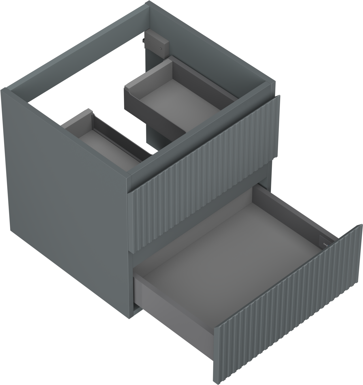 Изрезът в чекмеджето е проектиран по такъв начин, че да побере сифона, който е необходим в мивковите инсталации. Благодарение на това мебелът може да бъде монтиран напълно функционално, без да се налага отказване от пространството в чекмеджето заради инсталацията.
