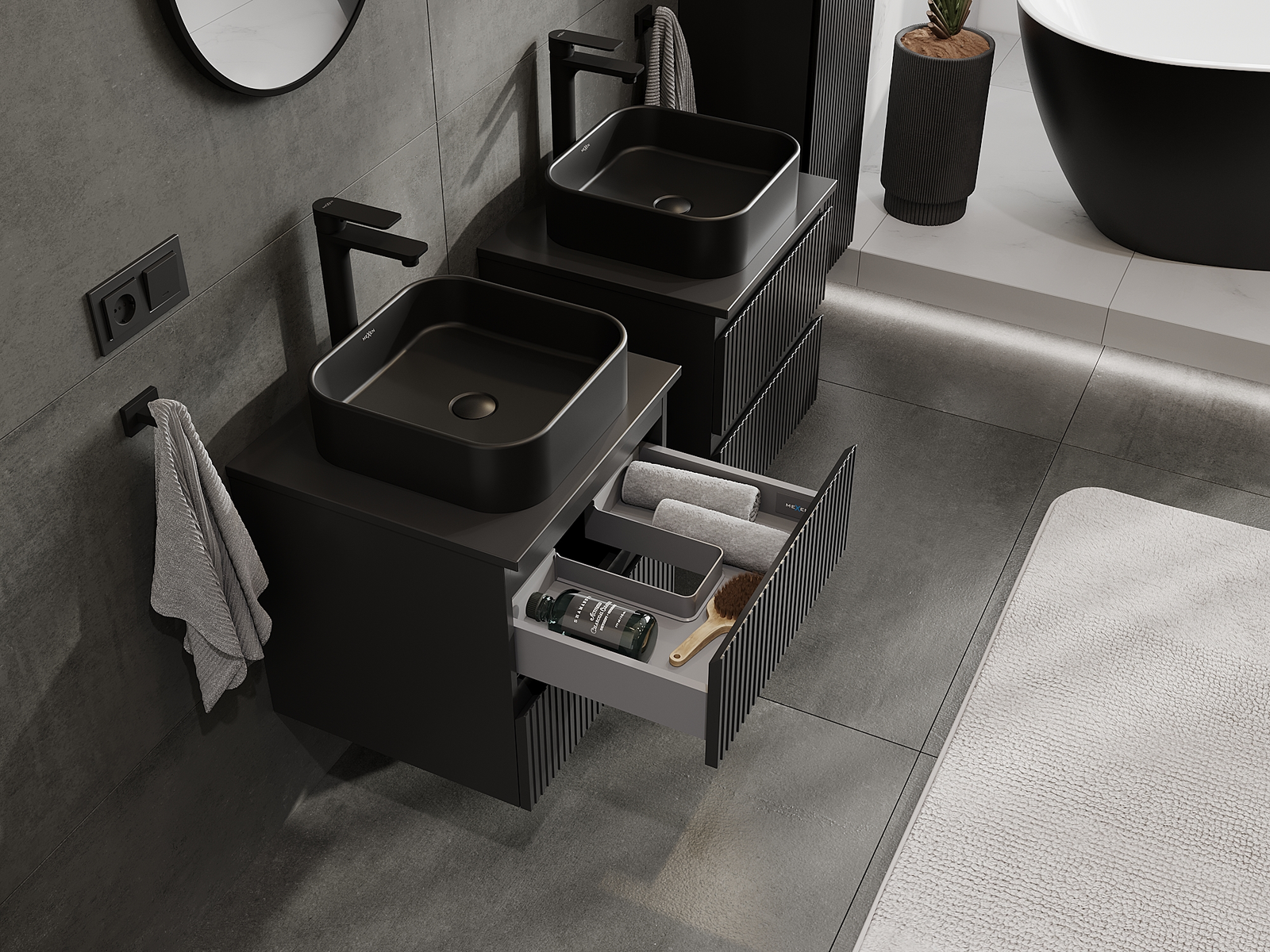 Нашите модулни мебели за баня могат да се комбинират в различни цветови конфигурации, което позволява пълна персонализация. Може да се избере както външният вид, така и функциите на отделните елементи, което позволява съчетаване на мебелите със собствените стилови и функционални предпочитания.