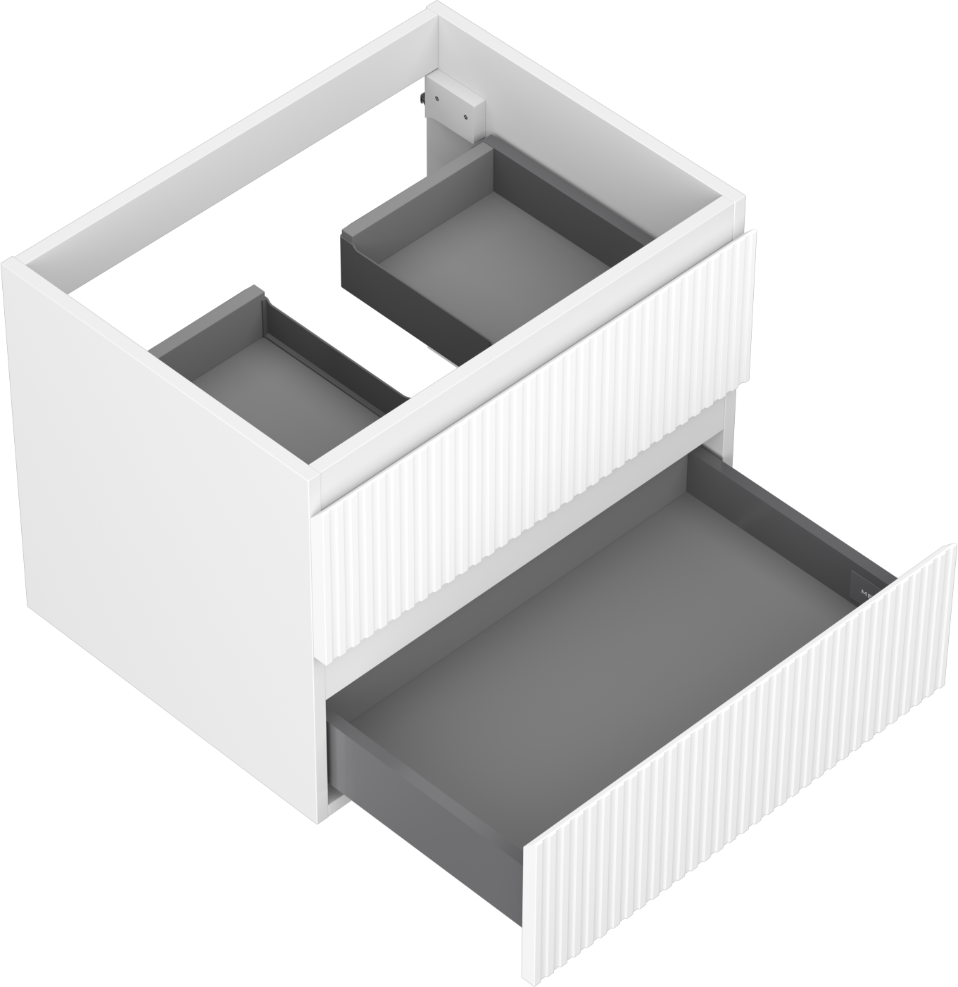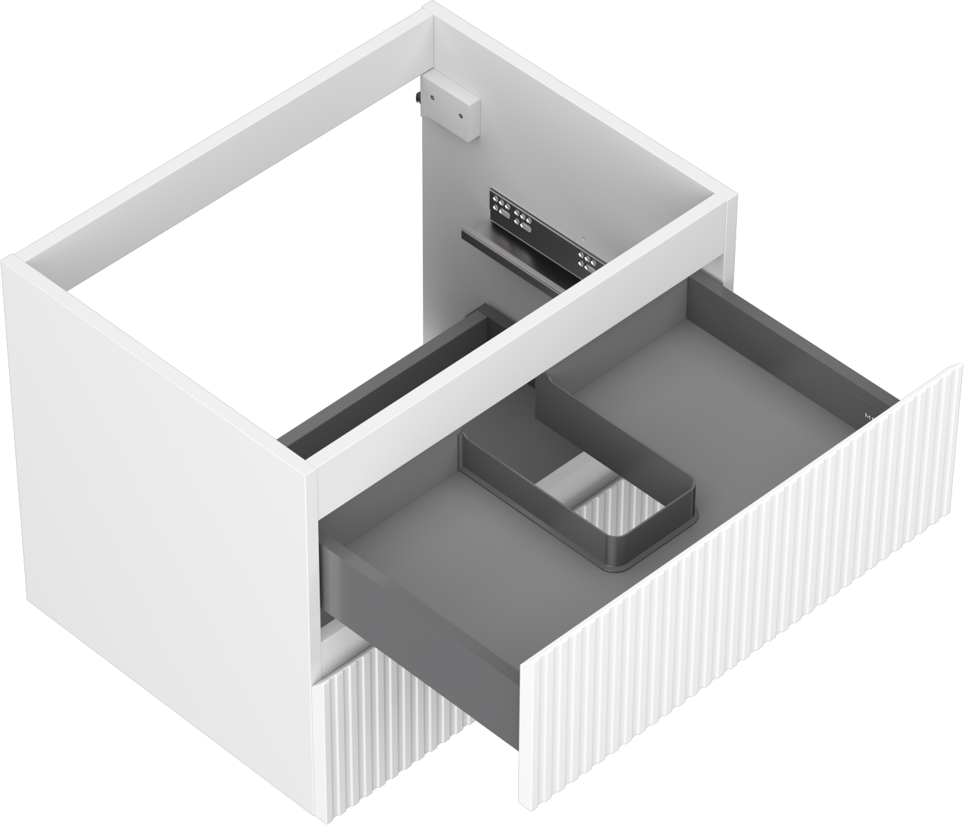 Изрезът в чекмеджето е проектиран по такъв начин, че да побере сифона, който е необходим в мивковите инсталации. Благодарение на това мебелът може да бъде монтиран напълно функционално, без да се налага отказване от пространството в чекмеджето заради инсталацията.