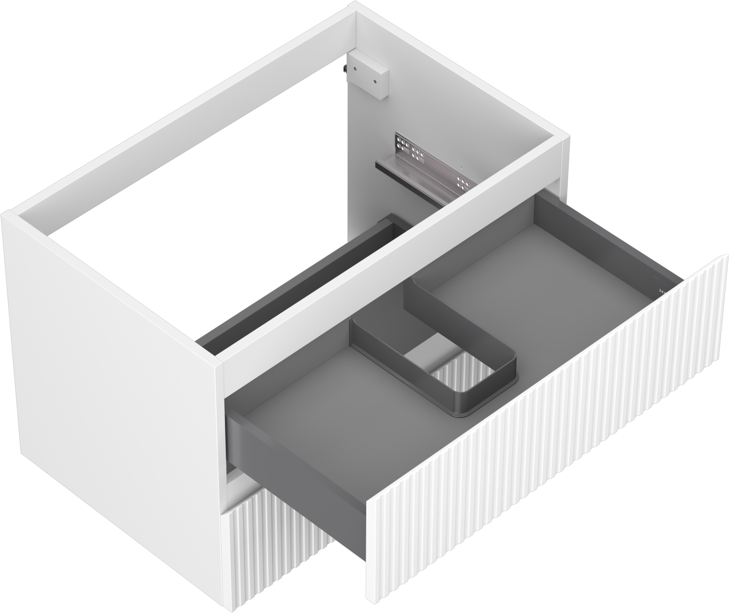 Изрезът в чекмеджето е проектиран по такъв начин, че да побере сифона, който е необходим в мивковите инсталации. Благодарение на това мебелът може да бъде монтиран напълно функционално, без да се налага отказване от пространството в чекмеджето заради инсталацията.