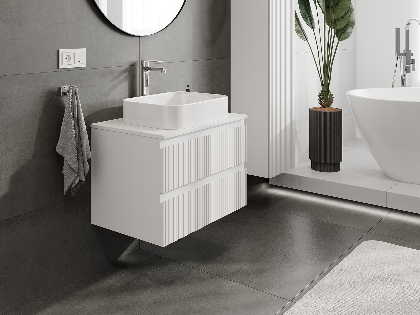 Корпусът на шкафа се доставя напълно сглобен, което означава максимално удобство и спестяване на време. Не е нужно да губите часове за сглобяване на мебела – просто го монтирайте на избраното място в банята. Това е идеалното решение за хора, които ценят бързия монтаж и незабавния ефект.