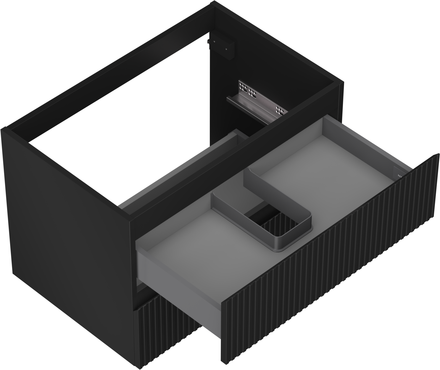 Изрезът в чекмеджето е проектиран по такъв начин, че да побере сифона, който е необходим в мивковите инсталации. Благодарение на това мебелът може да бъде монтиран напълно функционално, без да се налага отказване от пространството в чекмеджето заради инсталацията.