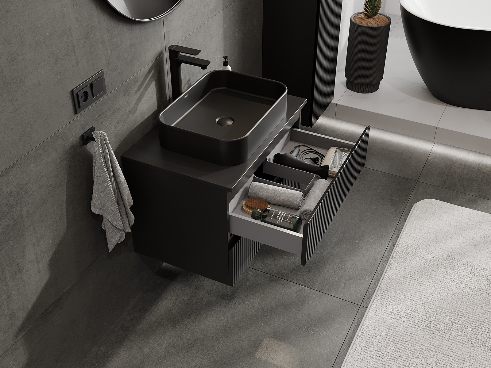 Нашите модулни мебели за баня могат да се комбинират в различни цветови конфигурации, което позволява пълна персонализация. Може да се избере както външният вид, така и функциите на отделните елементи, което позволява съчетаване на мебелите със собствените стилови и функционални предпочитания.
