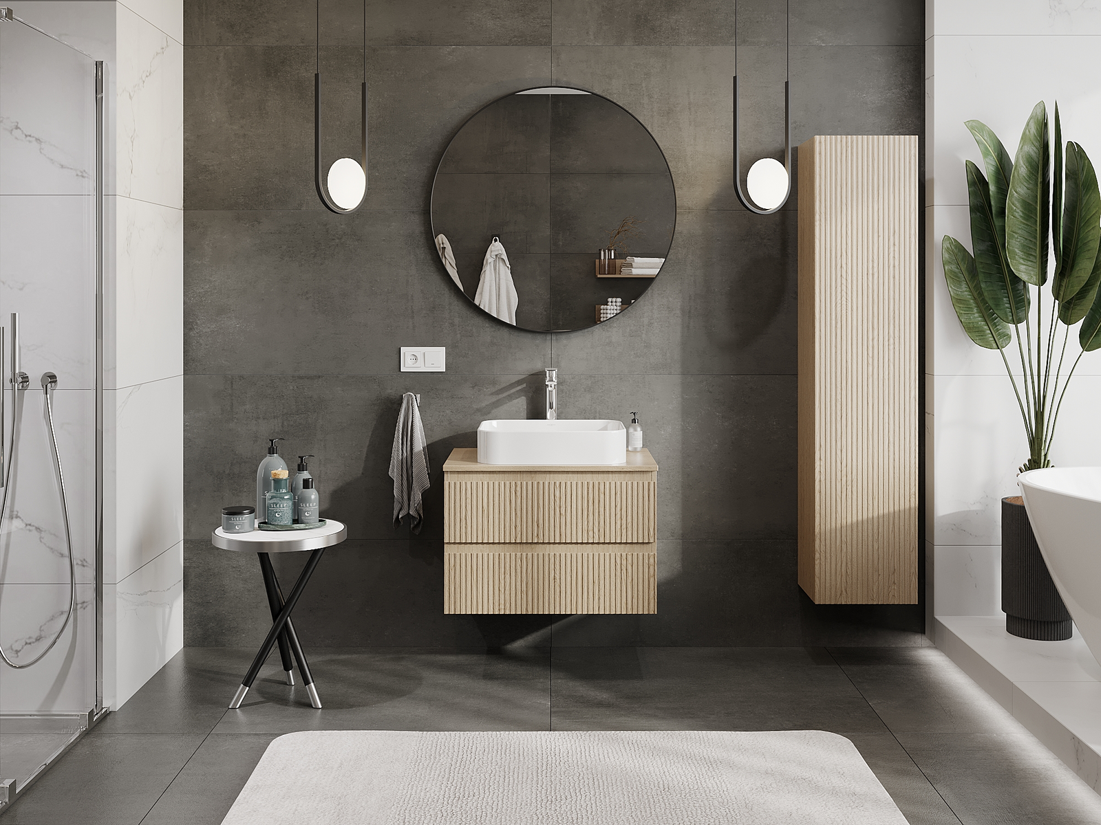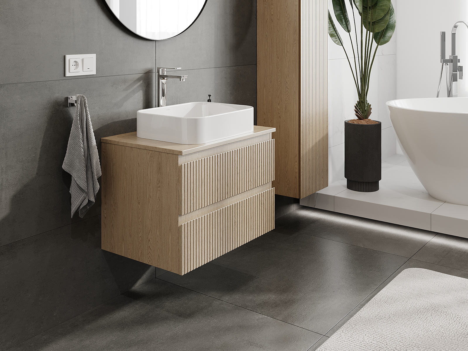 Корпусът на шкафа се доставя напълно сглобен, което означава максимално удобство и спестяване на време. Не е нужно да губите часове за сглобяване на мебела – просто го монтирайте на избраното място в банята. Това е идеалното решение за хора, които ценят бързия монтаж и незабавния ефект.