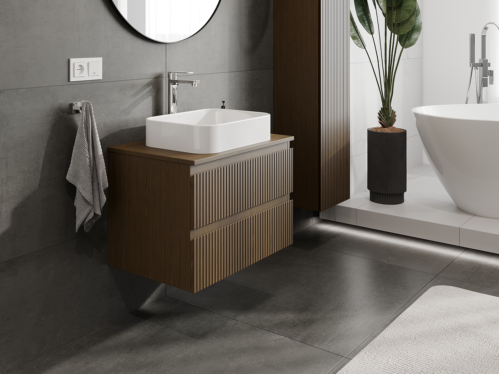 Корпусът на шкафа се доставя напълно сглобен, което означава максимално удобство и спестяване на време. Не е нужно да губите часове за сглобяване на мебела – просто го монтирайте на избраното място в банята. Това е идеалното решение за хора, които ценят бързия монтаж и незабавния ефект.
