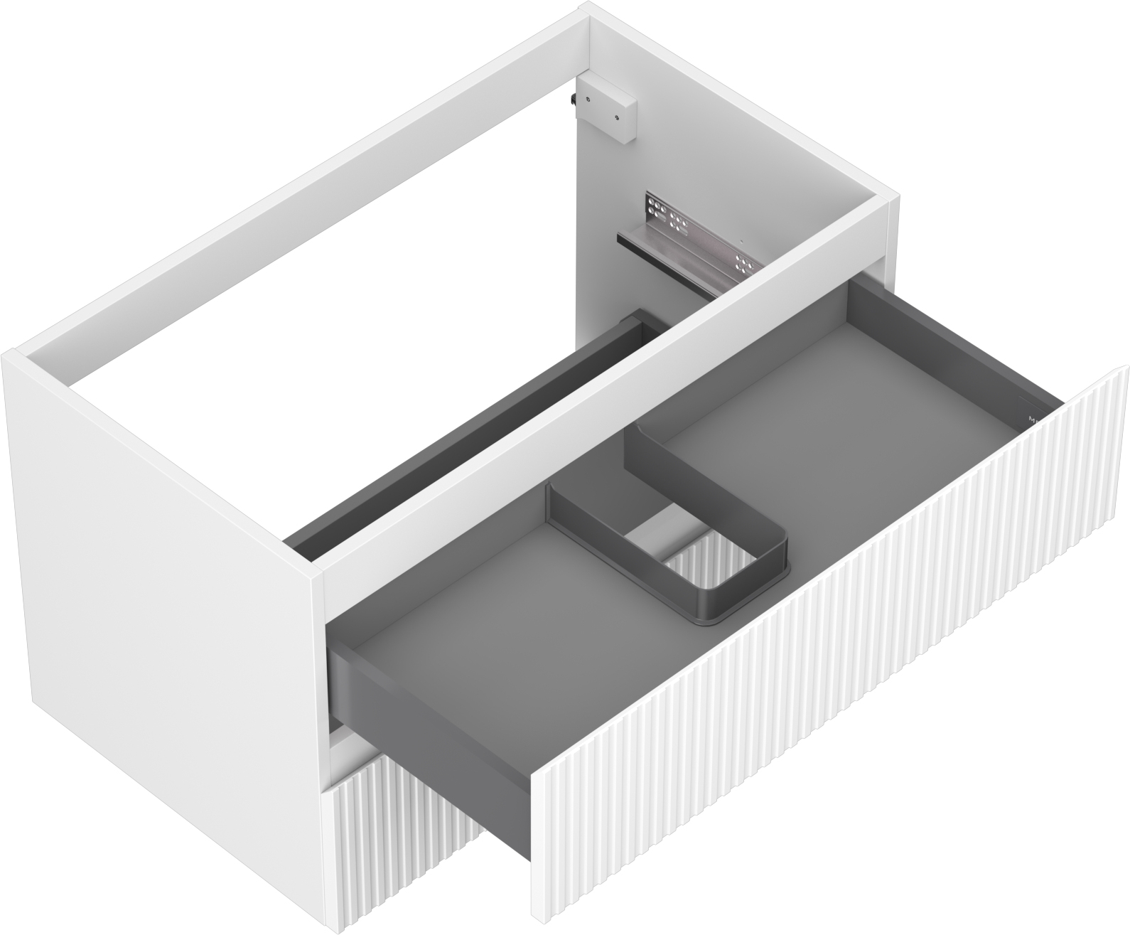 Изрезът в чекмеджето е проектиран по такъв начин, че да побере сифона, който е необходим в мивковите инсталации. Благодарение на това мебелът може да бъде монтиран напълно функционално, без да се налага отказване от пространството в чекмеджето заради инсталацията.