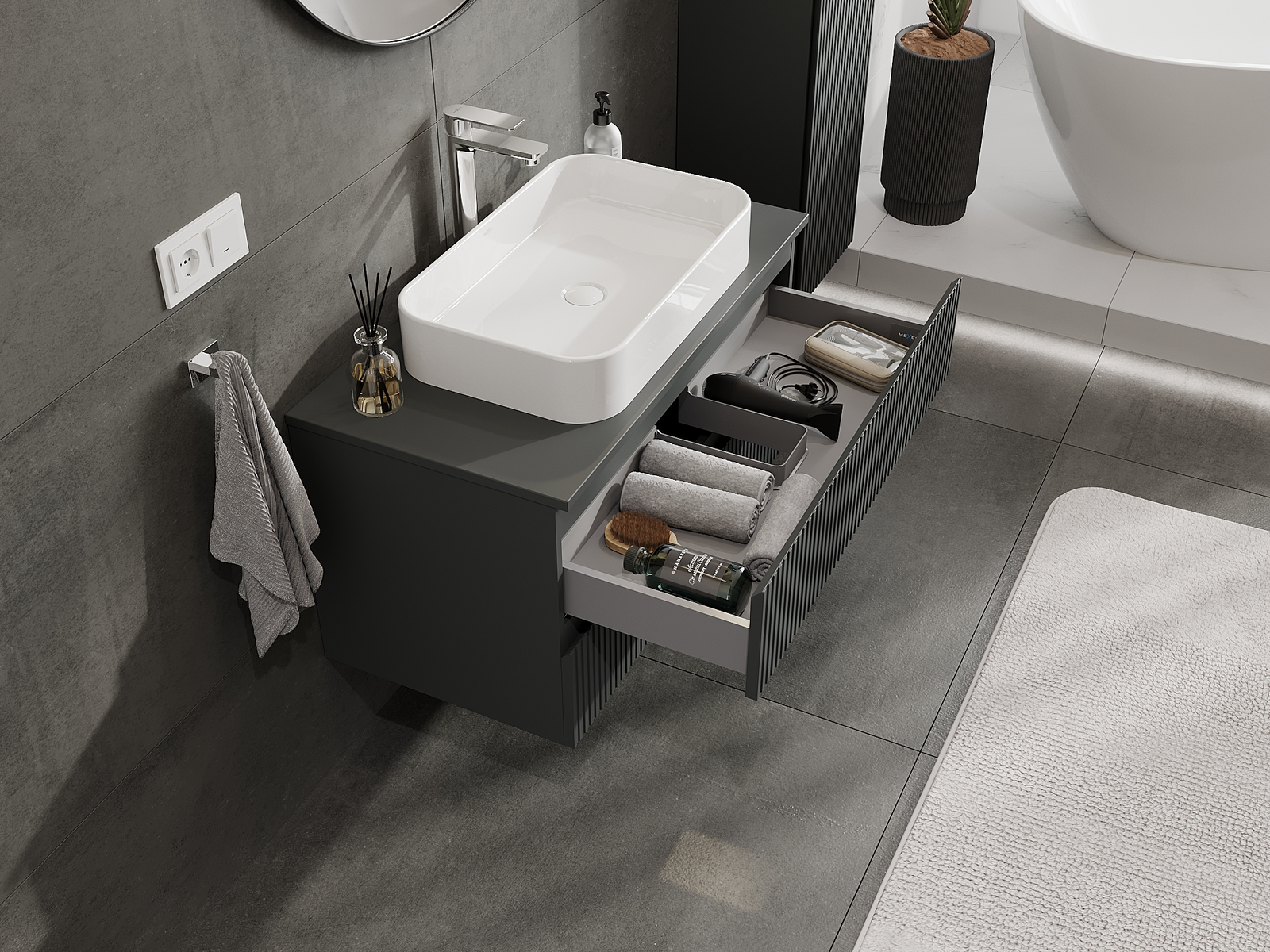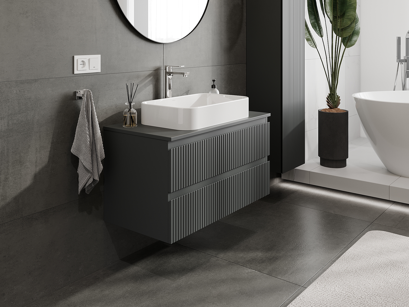 Корпусът на шкафа се доставя напълно сглобен, което означава максимално удобство и спестяване на време. Не е нужно да губите часове за сглобяване на мебела – просто го монтирайте на избраното място в банята. Това е идеалното решение за хора, които ценят бързия монтаж и незабавния ефект.