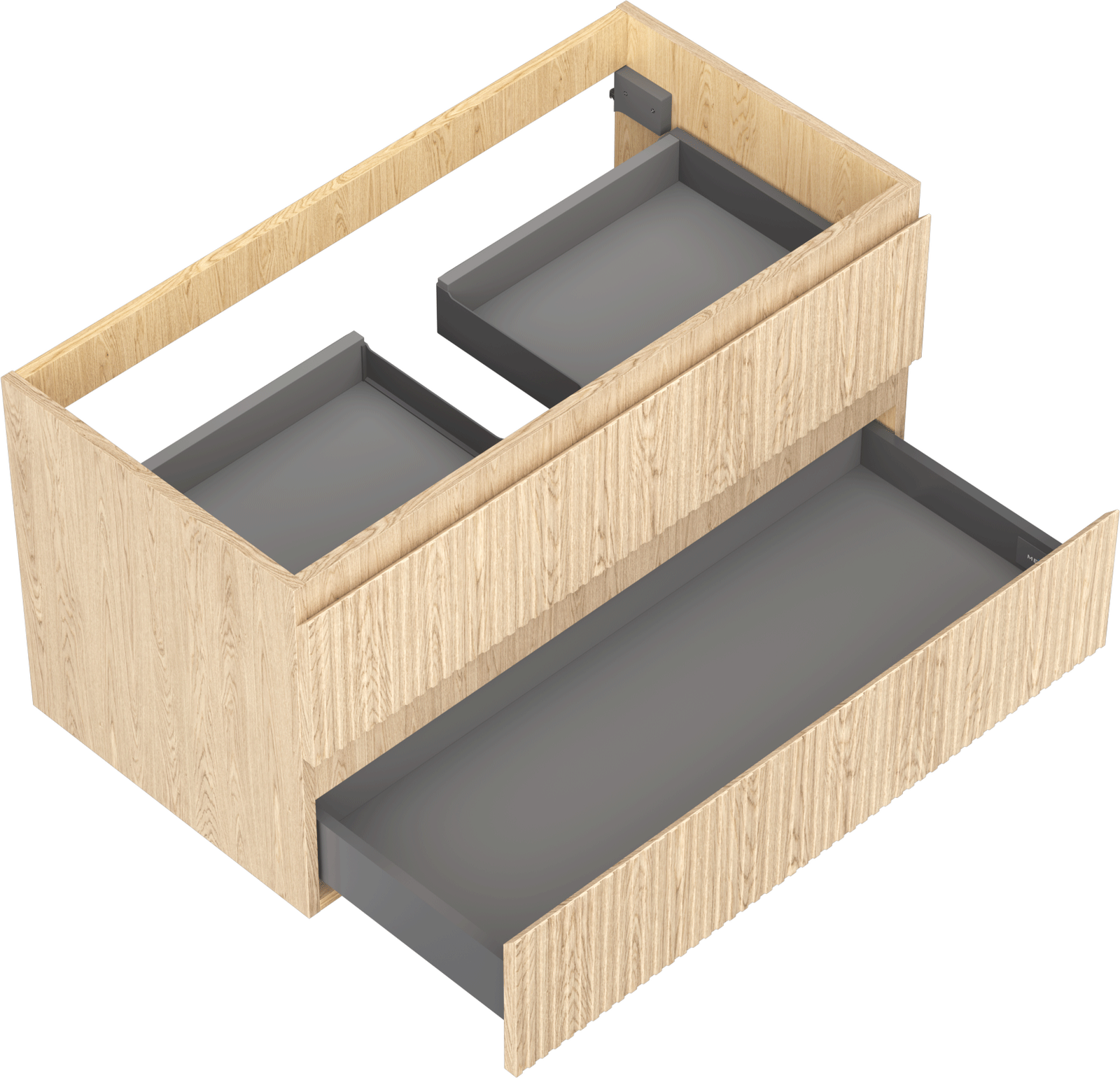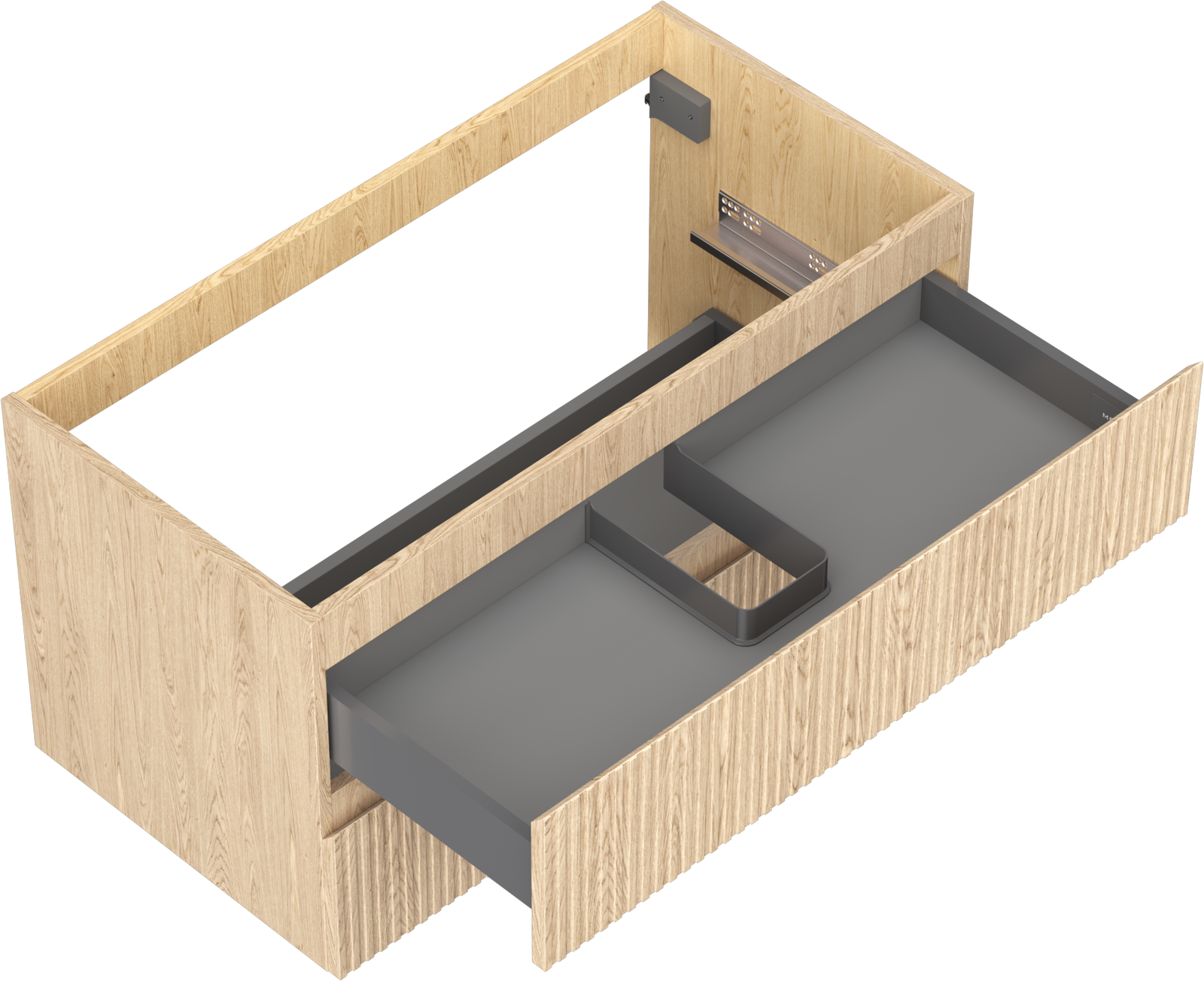 Изрезът в чекмеджето е проектиран по такъв начин, че да побере сифона, който е необходим в мивковите инсталации. Благодарение на това мебелът може да бъде монтиран напълно функционално, без да се налага отказване от пространството в чекмеджето заради инсталацията.