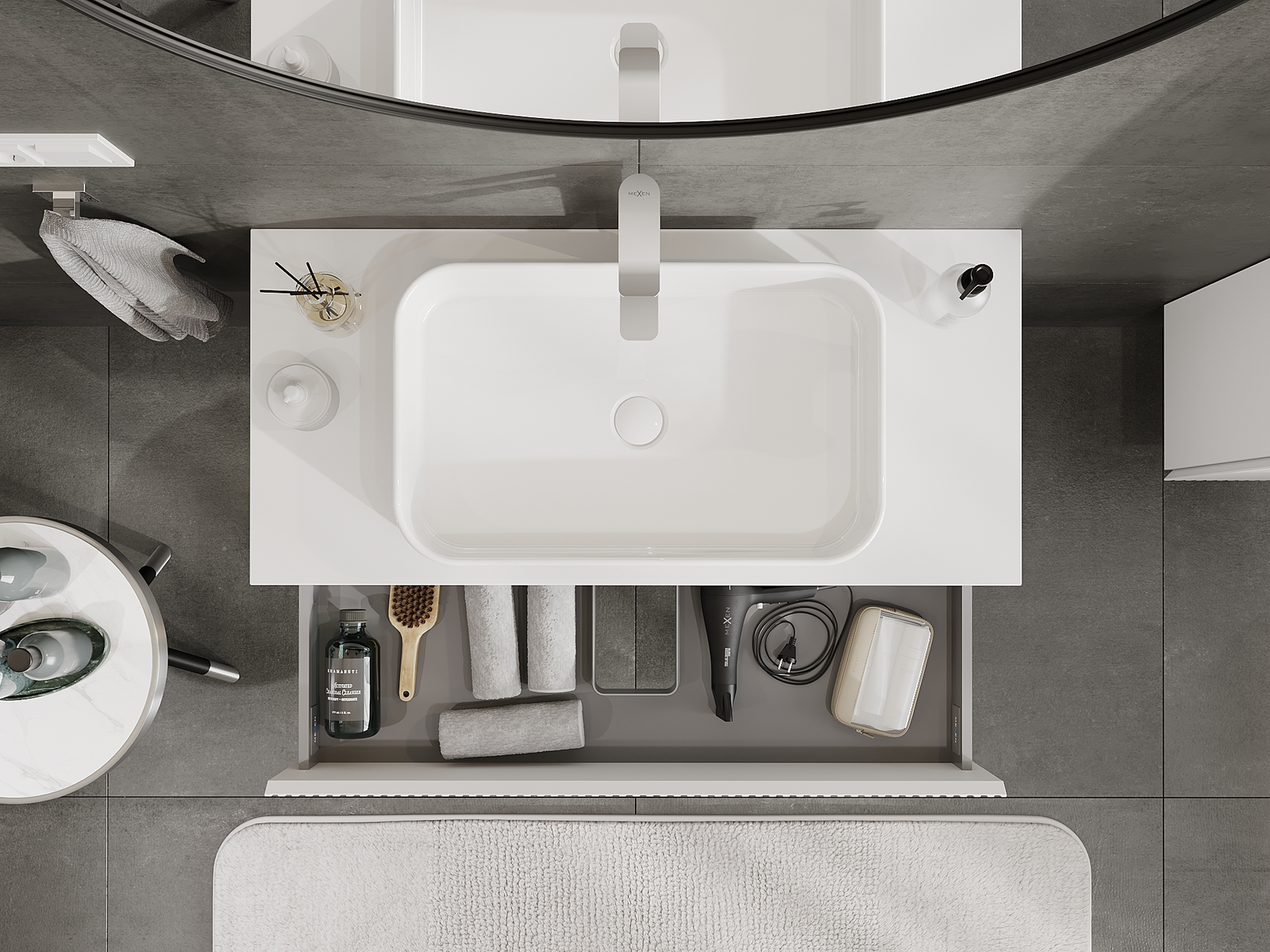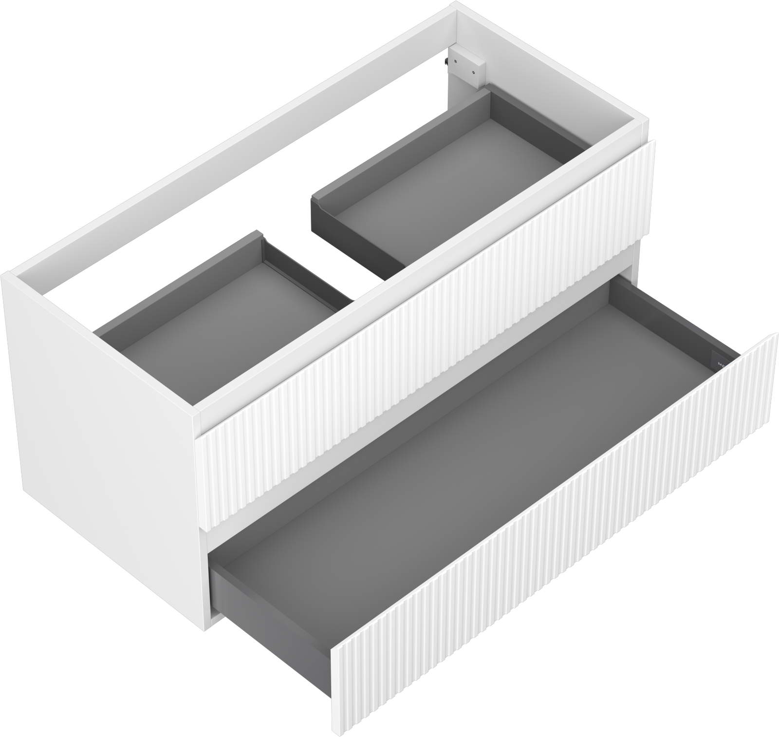 Изрезът в чекмеджето е проектиран по такъв начин, че да побере сифона, който е необходим в мивковите инсталации. Благодарение на това мебелът може да бъде монтиран напълно функционално, без да се налага отказване от пространството в чекмеджето заради инсталацията.