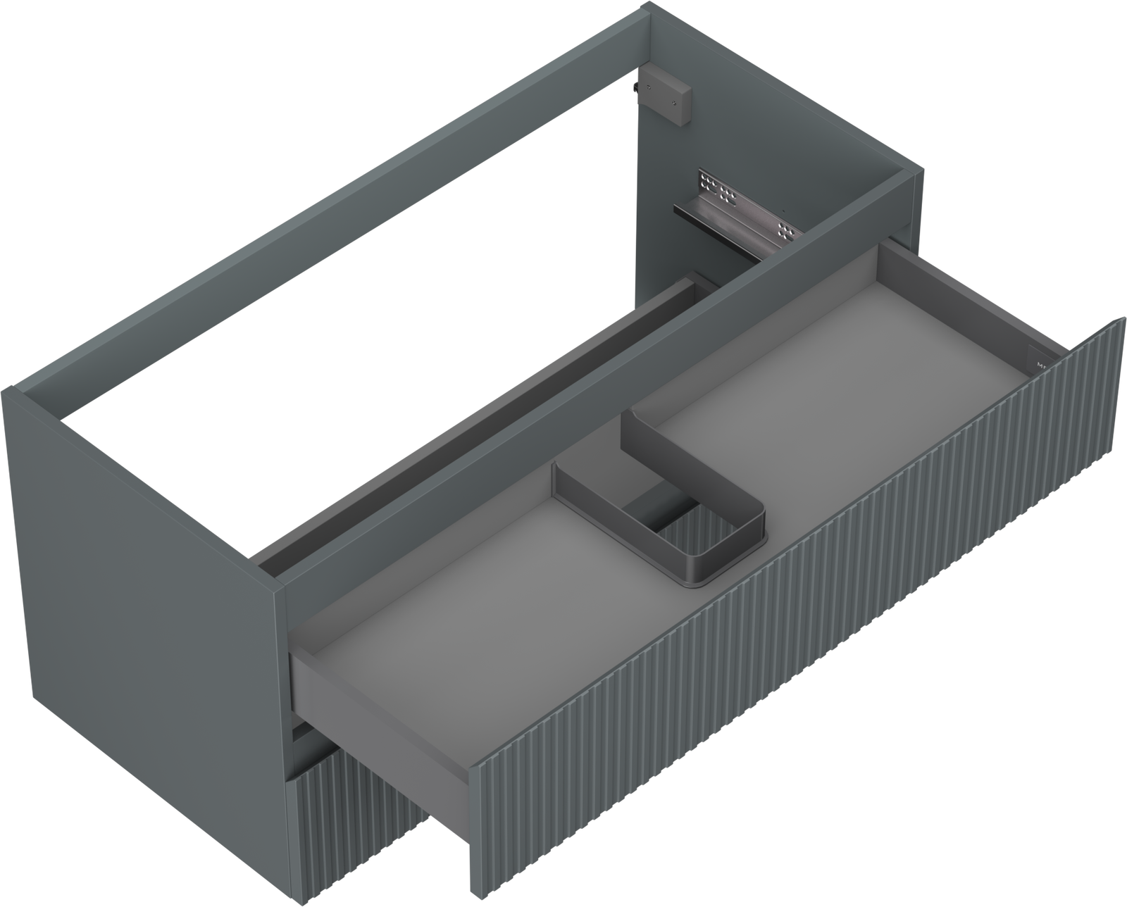 Изрезът в чекмеджето е проектиран по такъв начин, че да побере сифона, който е необходим в мивковите инсталации. Благодарение на това мебелът може да бъде монтиран напълно функционално, без да се налага отказване от пространството в чекмеджето заради инсталацията.