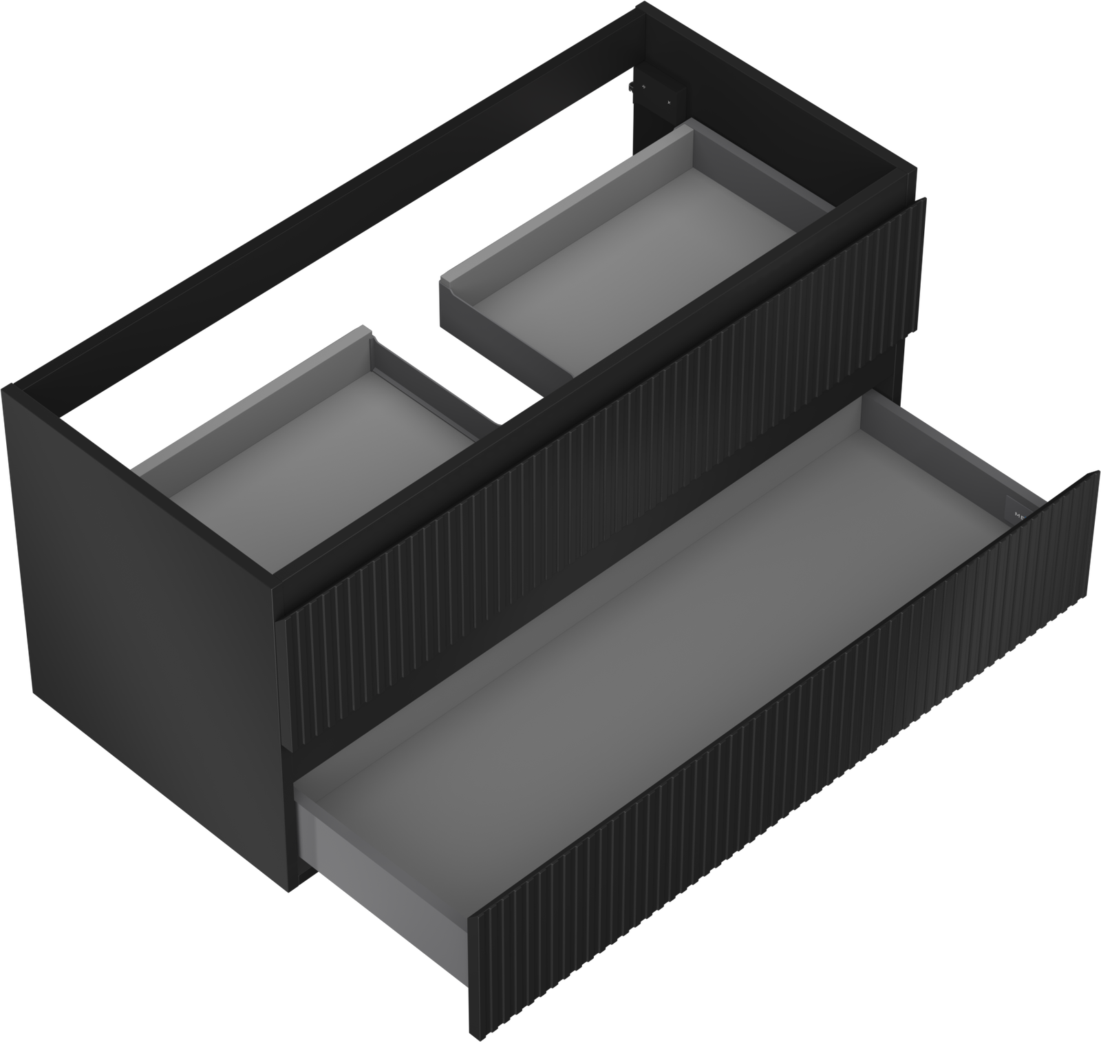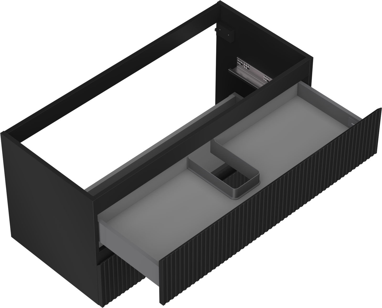 Изрезът в чекмеджето е проектиран по такъв начин, че да побере сифона, който е необходим в мивковите инсталации. Благодарение на това мебелът може да бъде монтиран напълно функционално, без да се налага отказване от пространството в чекмеджето заради инсталацията.