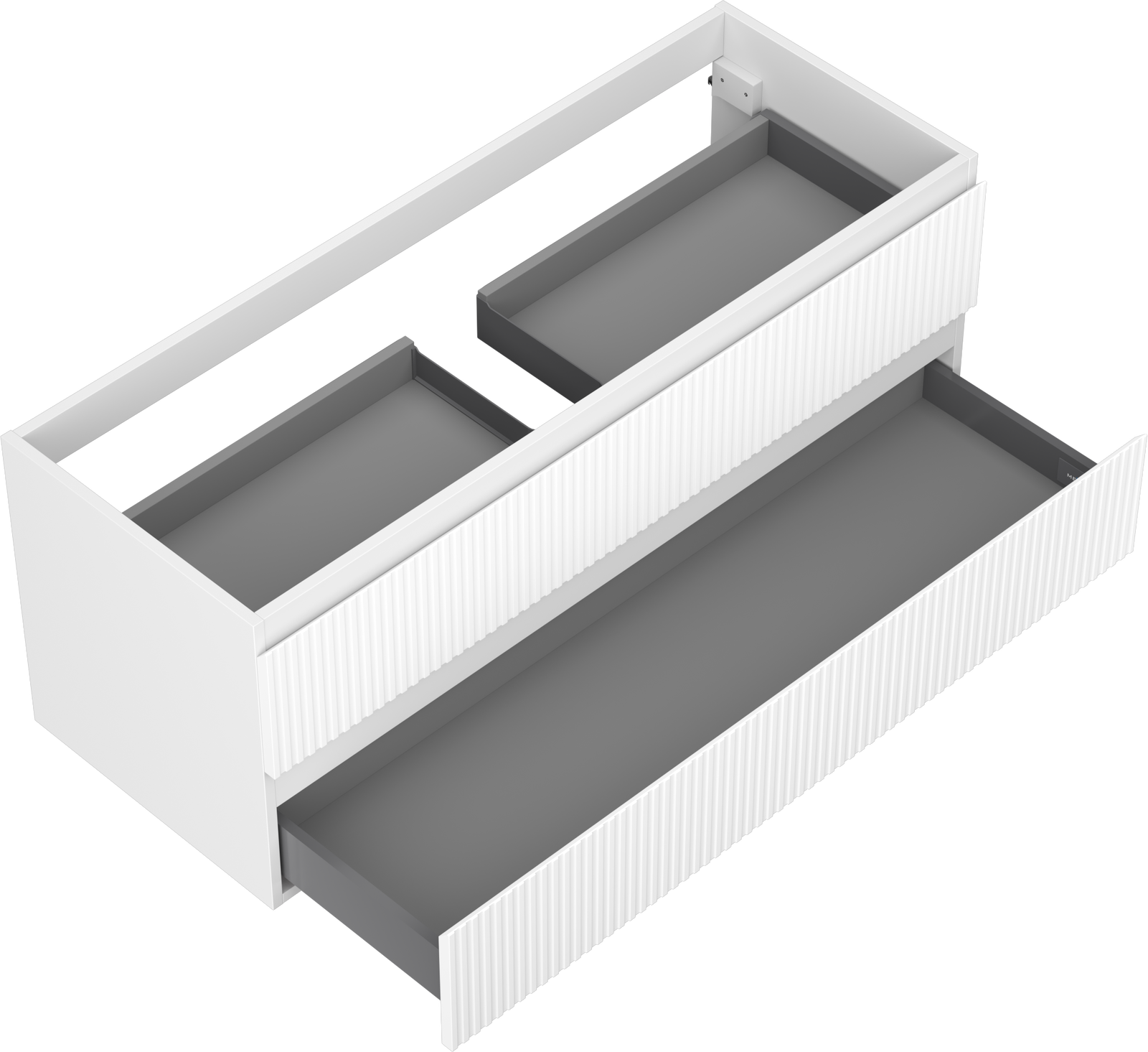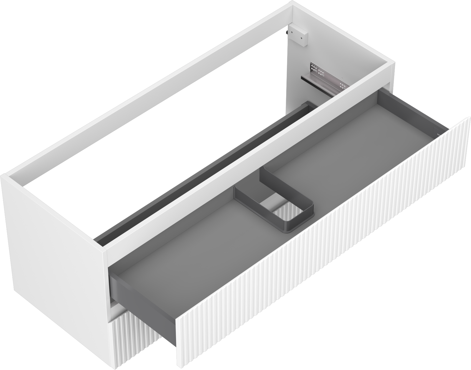 Изрезът в чекмеджето е проектиран по такъв начин, че да побере сифона, който е необходим в мивковите инсталации. Благодарение на това мебелът може да бъде монтиран напълно функционално, без да се налага отказване от пространството в чекмеджето заради инсталацията.