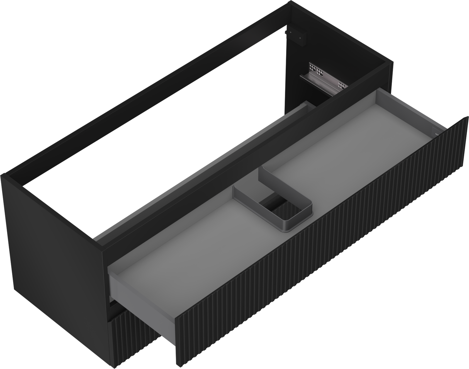 Изрезът в чекмеджето е проектиран по такъв начин, че да побере сифона, който е необходим в мивковите инсталации. Благодарение на това мебелът може да бъде монтиран напълно функционално, без да се налага отказване от пространството в чекмеджето заради инсталацията.