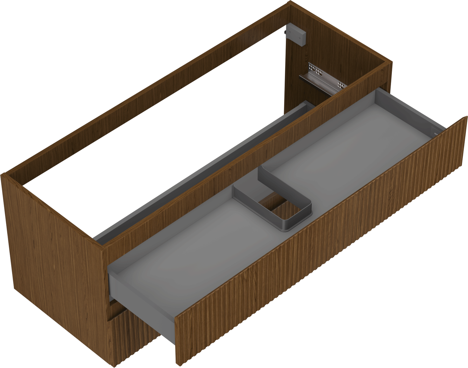 Изрезът в чекмеджето е проектиран по такъв начин, че да побере сифона, който е необходим в мивковите инсталации. Благодарение на това мебелът може да бъде монтиран напълно функционално, без да се налага отказване от пространството в чекмеджето заради инсталацията.