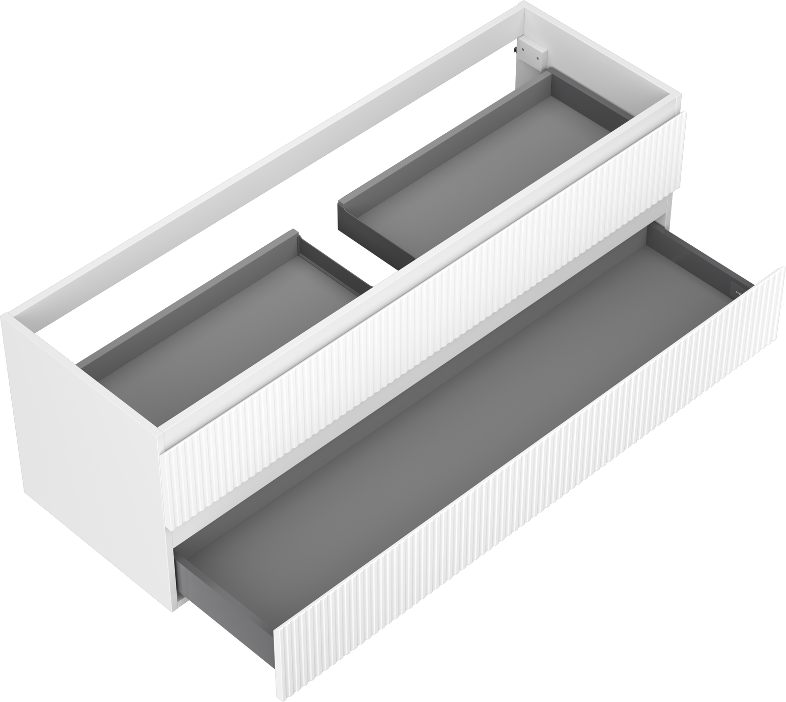 Изрезът в чекмеджето е проектиран по такъв начин, че да побере сифона, който е необходим в мивковите инсталации. Благодарение на това мебелът може да бъде монтиран напълно функционално, без да се налага отказване от пространството в чекмеджето заради инсталацията.