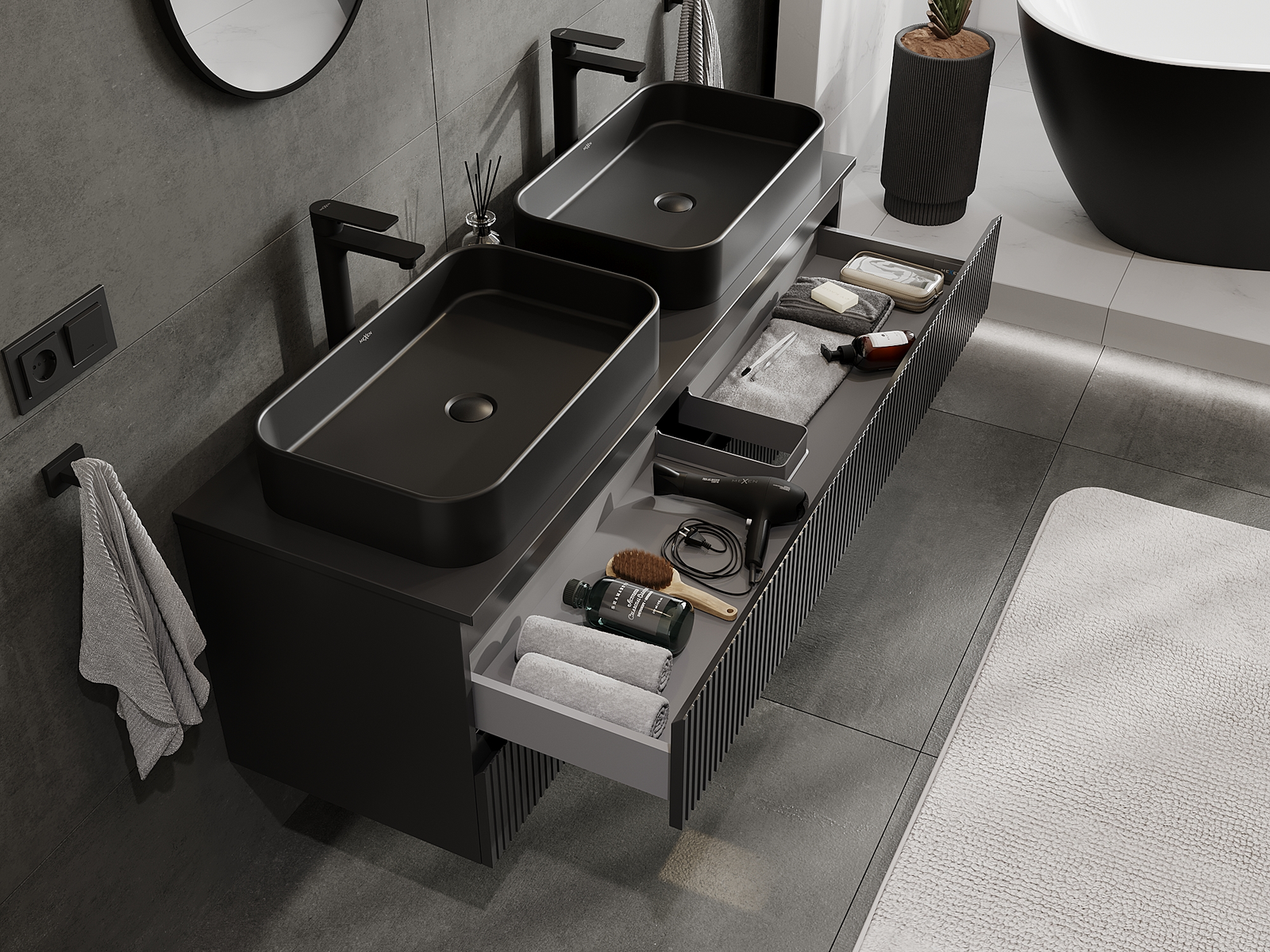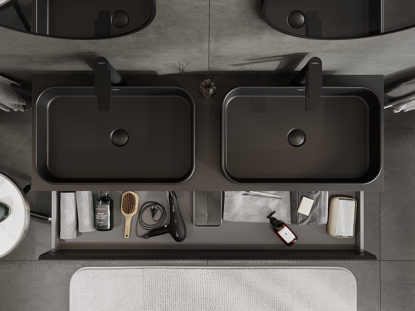 Нашите модулни мебели за баня могат да се комбинират в различни цветови конфигурации, което позволява пълна персонализация. Може да се избере както външният вид, така и функциите на отделните елементи, което позволява съчетаване на мебелите със собствените стилови и функционални предпочитания.