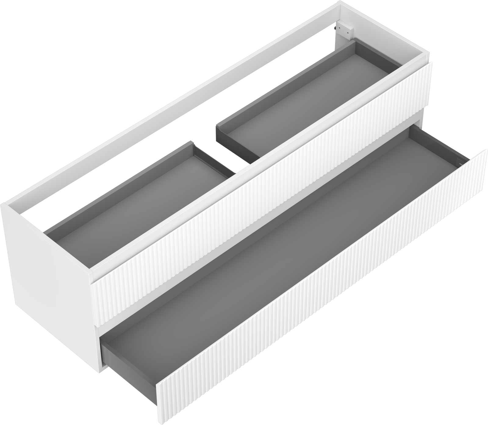 Изрезът в чекмеджето е проектиран по такъв начин, че да побере сифона, който е необходим в мивковите инсталации. Благодарение на това мебелът може да бъде монтиран напълно функционално, без да се налага отказване от пространството в чекмеджето заради инсталацията.
