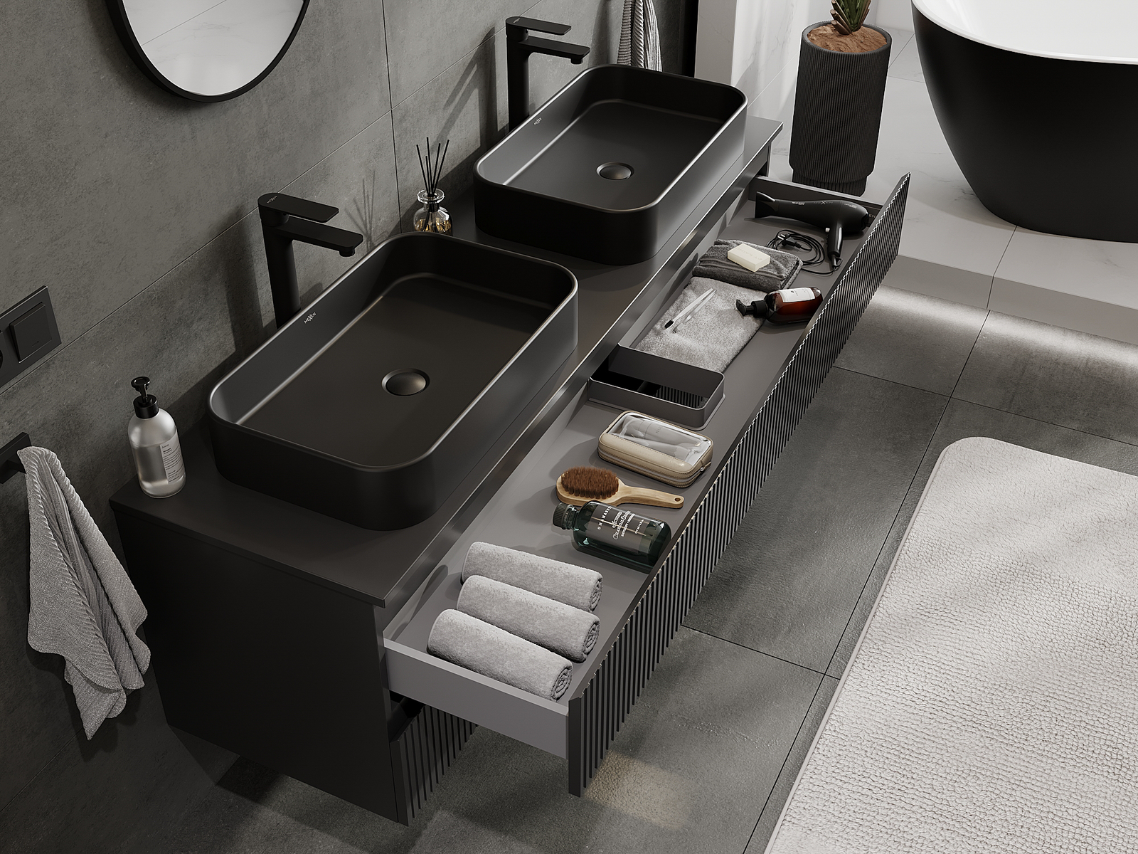 Нашите модулни мебели за баня могат да се комбинират в различни цветови конфигурации, което позволява пълна персонализация. Може да се избере както външният вид, така и функциите на отделните елементи, което позволява съчетаване на мебелите със собствените стилови и функционални предпочитания.