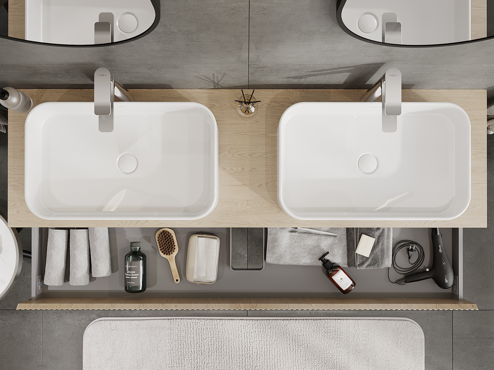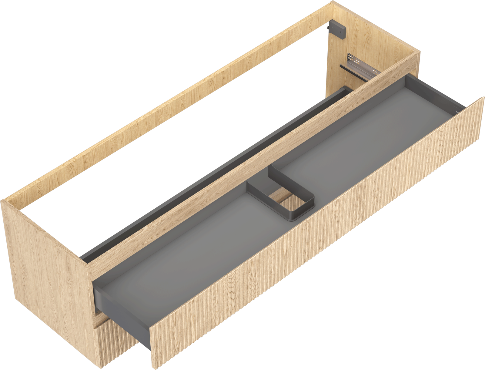 Изрезът в чекмеджето е проектиран по такъв начин, че да побере сифона, който е необходим в мивковите инсталации. Благодарение на това мебелът може да бъде монтиран напълно функционално, без да се налага отказване от пространството в чекмеджето заради инсталацията.