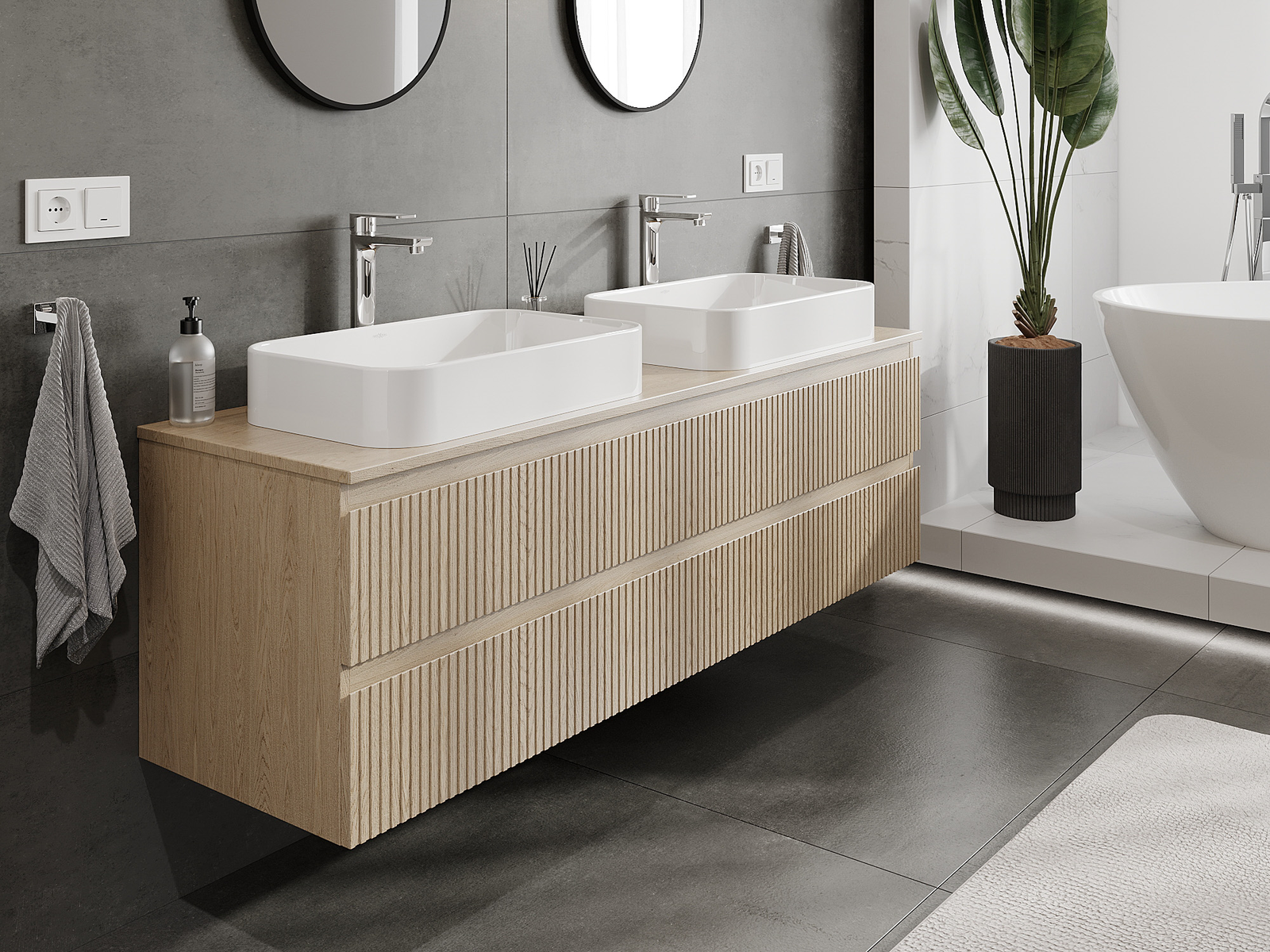 Нашите модулни мебели за баня могат да се комбинират в различни цветови конфигурации, което позволява пълна персонализация. Може да се избере както външният вид, така и функциите на отделните елементи, което позволява съчетаване на мебелите със собствените стилови и функционални предпочитания.