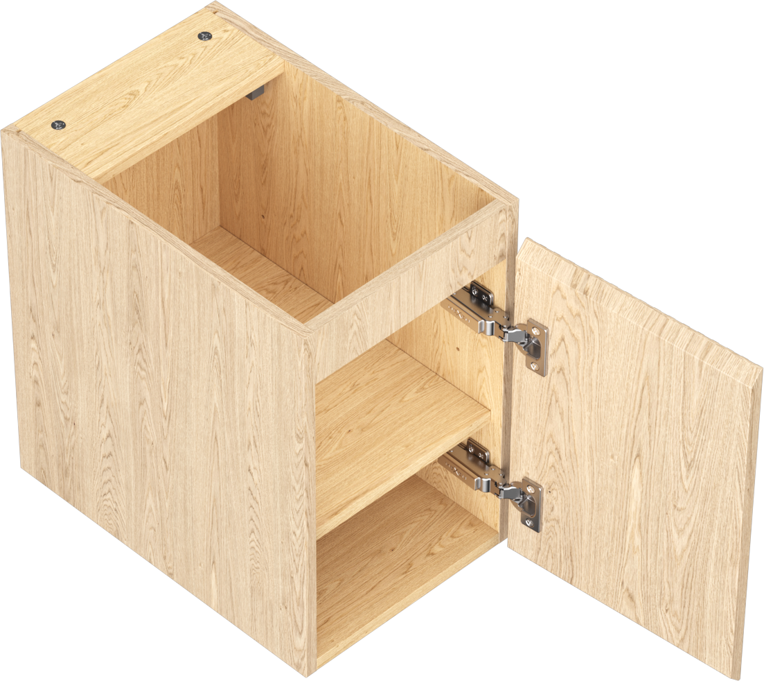 Корпусът на шкафа се доставя напълно сглобен, което означава максимално удобство и спестяване на време. Не е нужно да губите часове за сглобяване на мебела – просто го монтирайте на избраното място в банята. Това е идеалното решение за хора, които ценят бързия монтаж и незабавния ефект.