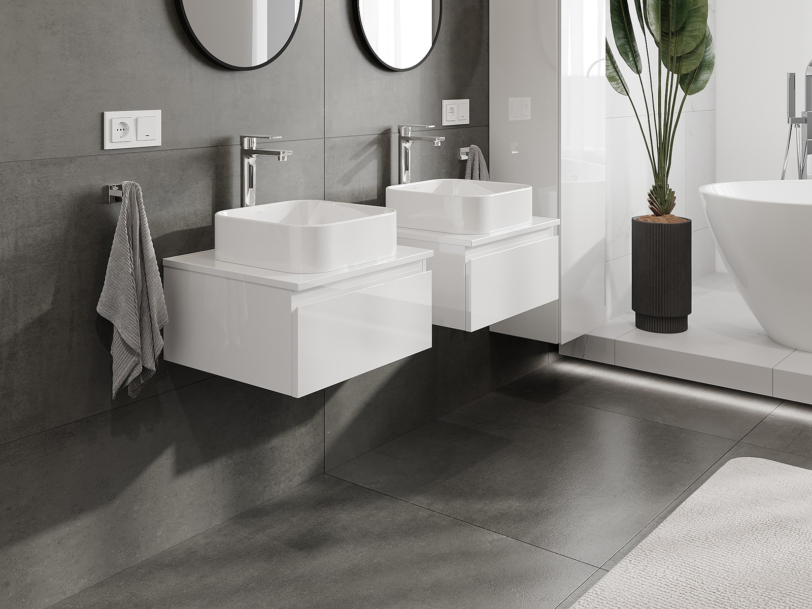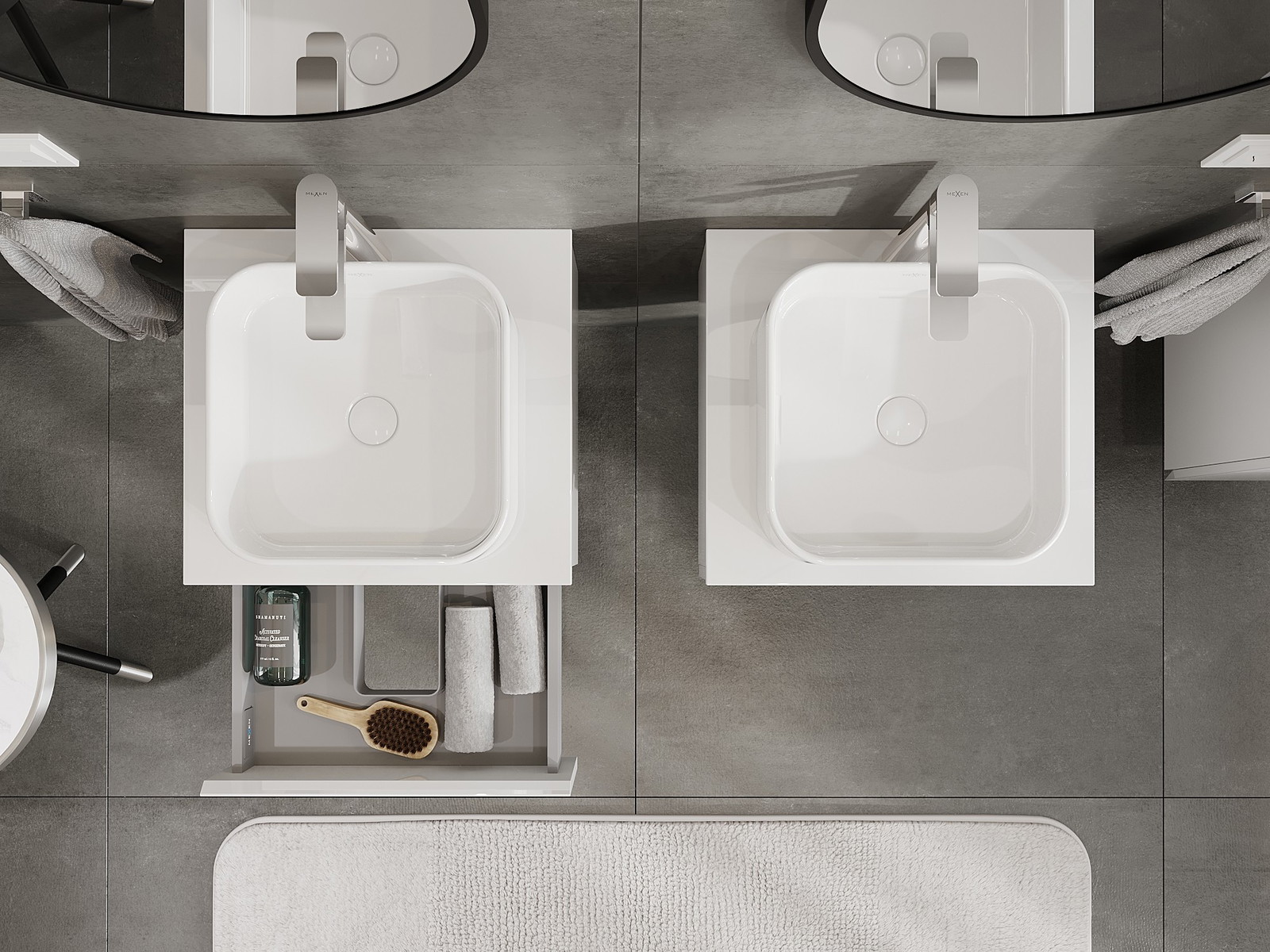 Нашите модулни мебели за баня могат да се комбинират в различни цветови конфигурации, което позволява пълна персонализация. Може да се избере както външният вид, така и функциите на отделните елементи, което позволява съчетаване на мебелите със собствените стилови и функционални предпочитания.