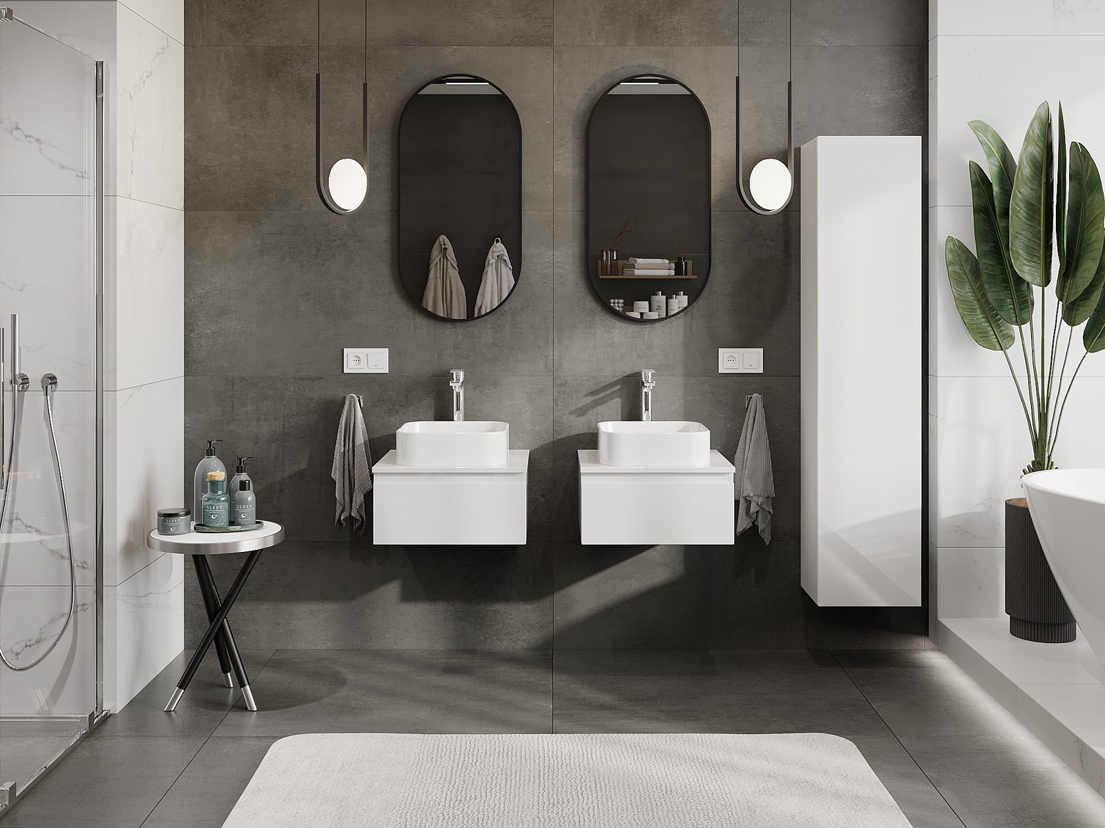 Корпусът на шкафа се доставя напълно сглобен, което означава максимално удобство и спестяване на време. Не е нужно да губите часове за сглобяване на мебела – просто го монтирайте на избраното място в банята. Това е идеалното решение за хора, които ценят бързия монтаж и незабавния ефект.