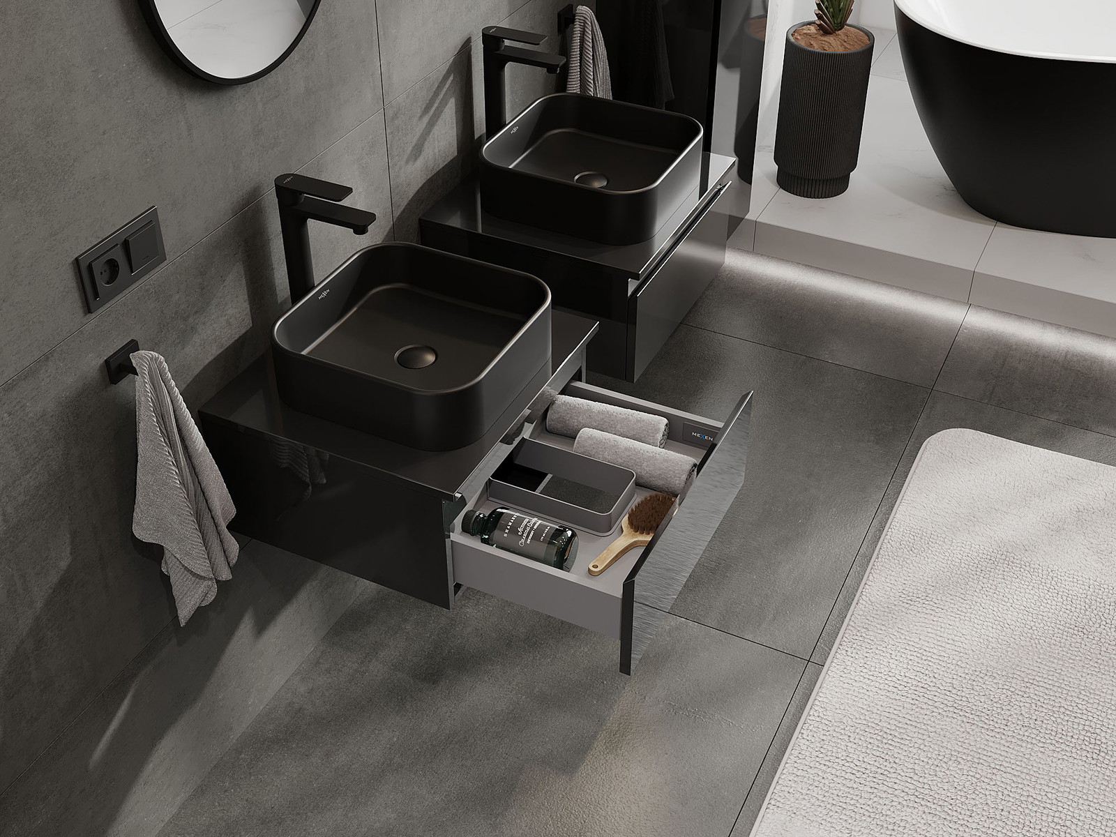 Нашите модулни мебели за баня могат да се комбинират в различни цветови конфигурации, което позволява пълна персонализация. Може да се избере както външният вид, така и функциите на отделните елементи, което позволява съчетаване на мебелите със собствените стилови и функционални предпочитания.