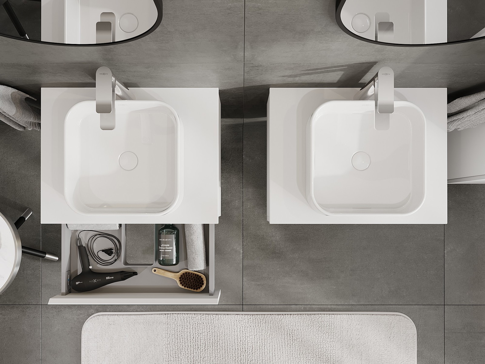 Изрезът в чекмеджето е проектиран по такъв начин, че да побере сифона, който е необходим в мивковите инсталации. Благодарение на това мебелът може да бъде монтиран напълно функционално, без да се налага отказване от пространството в чекмеджето заради инсталацията.