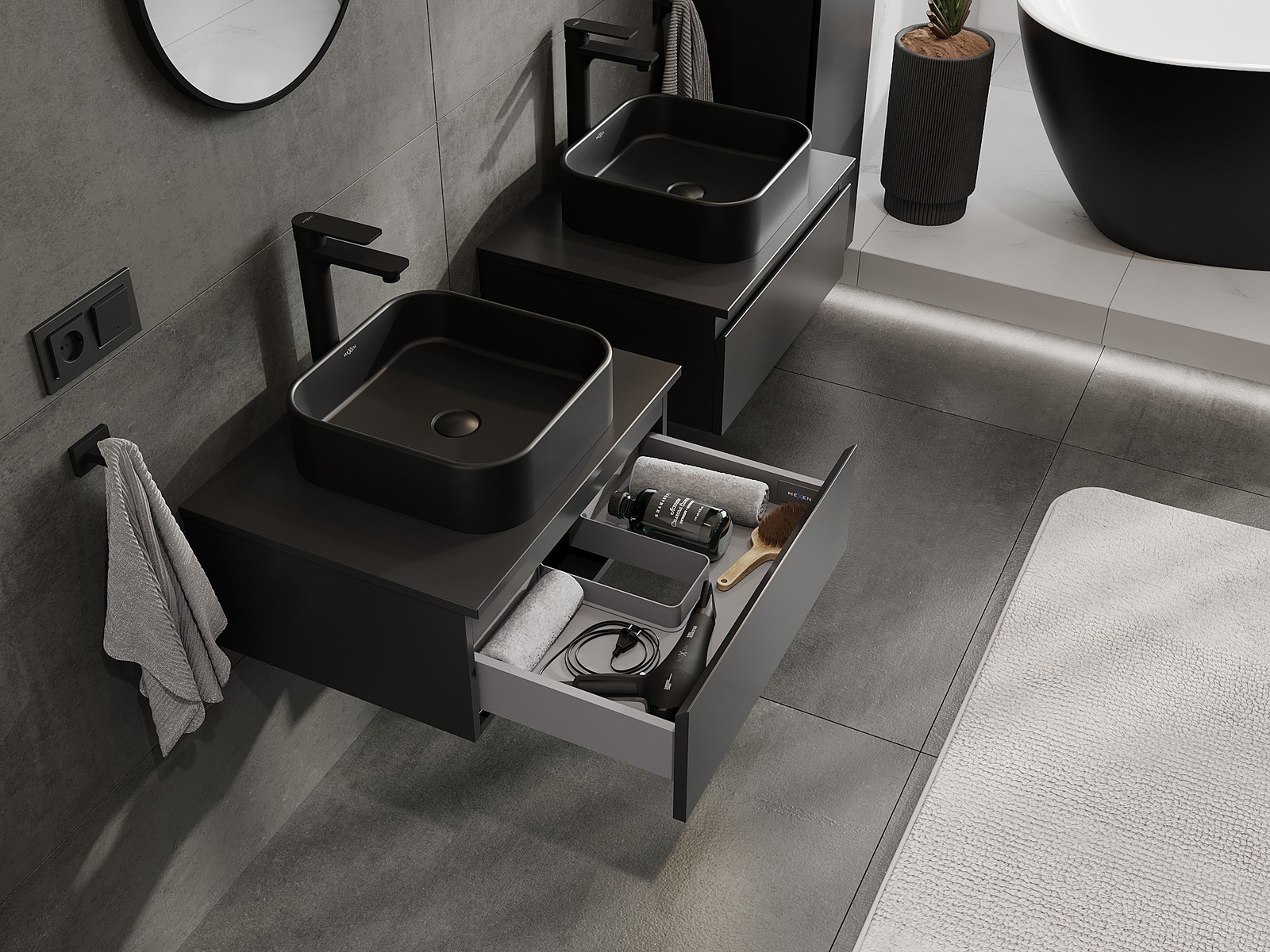 Нашите модулни мебели за баня могат да се комбинират в различни цветови конфигурации, което позволява пълна персонализация. Може да се избере както външният вид, така и функциите на отделните елементи, което позволява съчетаване на мебелите със собствените стилови и функционални предпочитания.