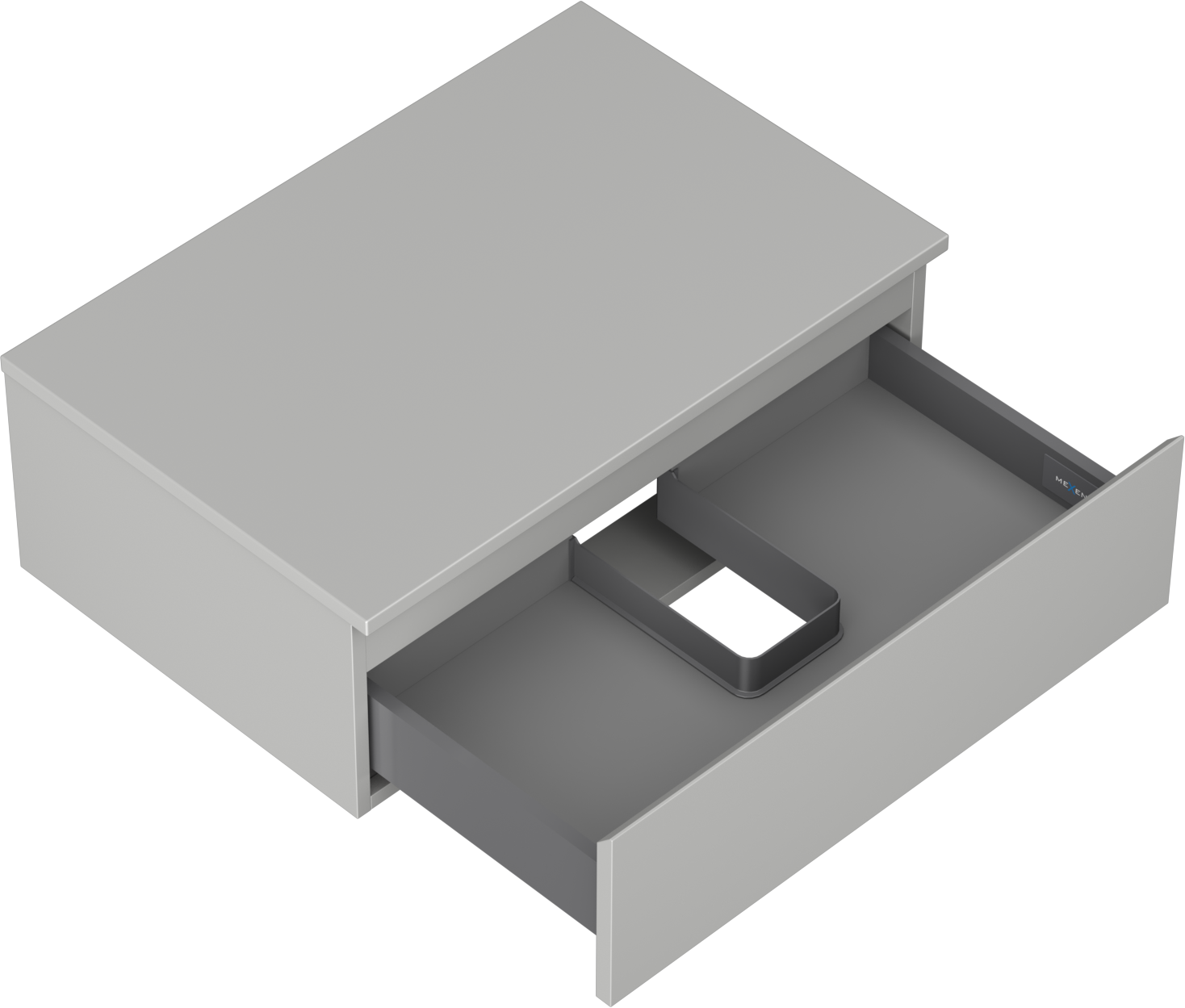 Изрезът в чекмеджето е проектиран по такъв начин, че да побере сифона, който е необходим в мивковите инсталации. Благодарение на това мебелът може да бъде монтиран напълно функционално, без да се налага отказване от пространството в чекмеджето заради инсталацията.