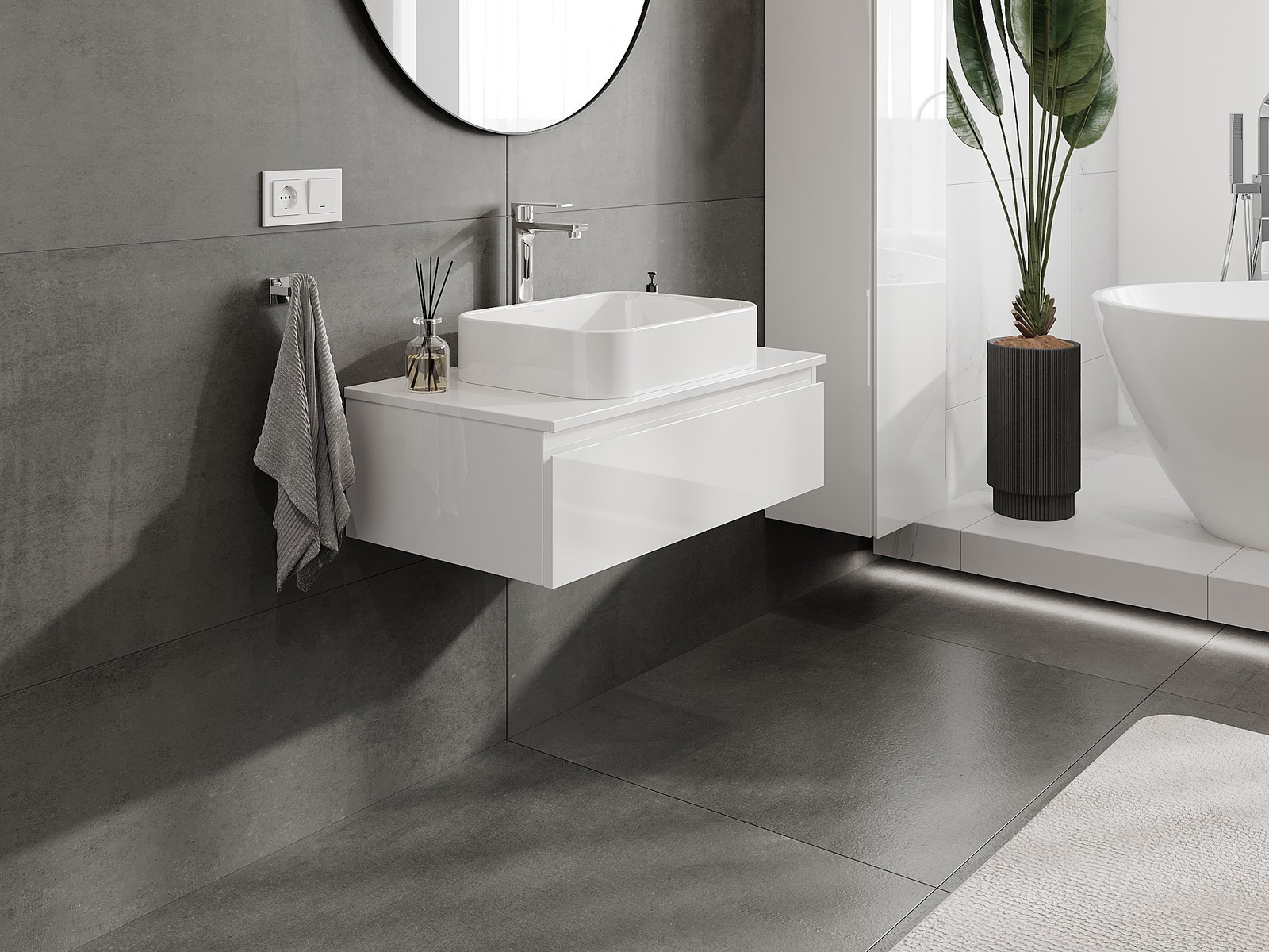 Корпусът на шкафа се доставя напълно сглобен, което означава максимално удобство и спестяване на време. Не е нужно да губите часове за сглобяване на мебела – просто го монтирайте на избраното място в банята. Това е идеалното решение за хора, които ценят бързия монтаж и незабавния ефект.