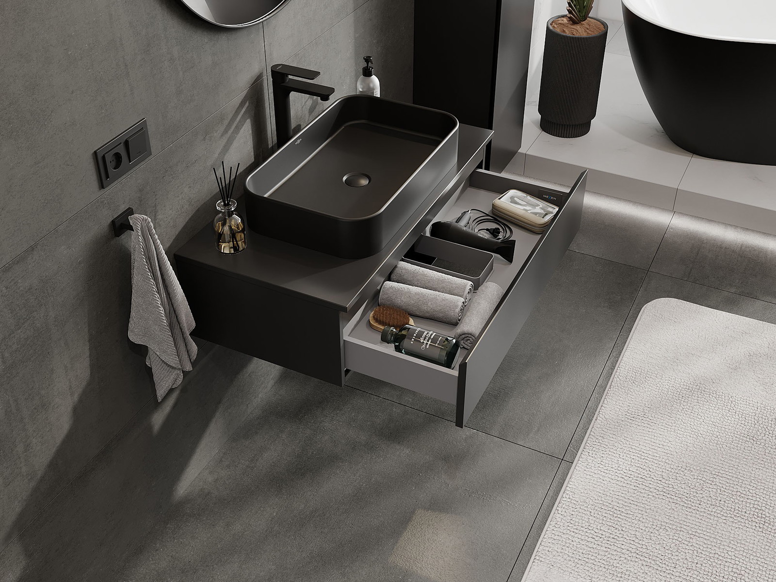 Изрезът в чекмеджето е проектиран по такъв начин, че да побере сифона, който е необходим в мивковите инсталации. Благодарение на това мебелът може да бъде монтиран напълно функционално, без да се налага отказване от пространството в чекмеджето заради инсталацията.