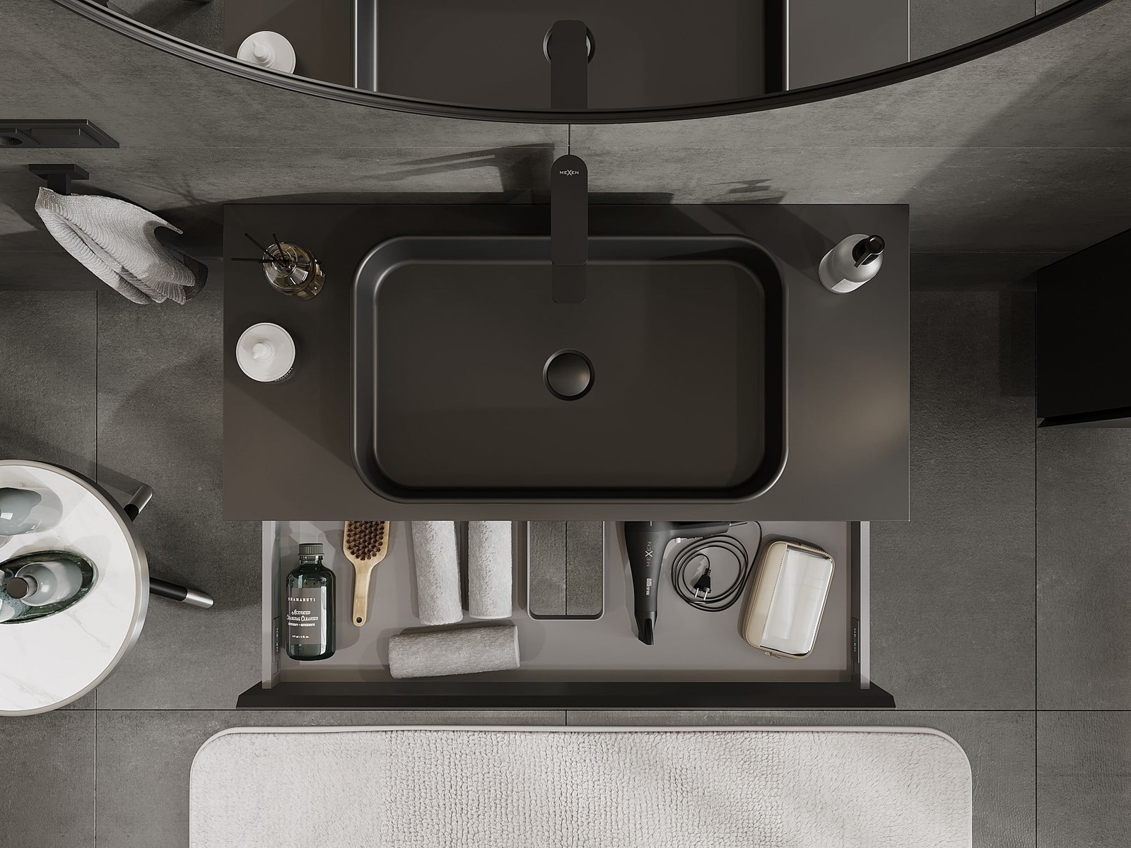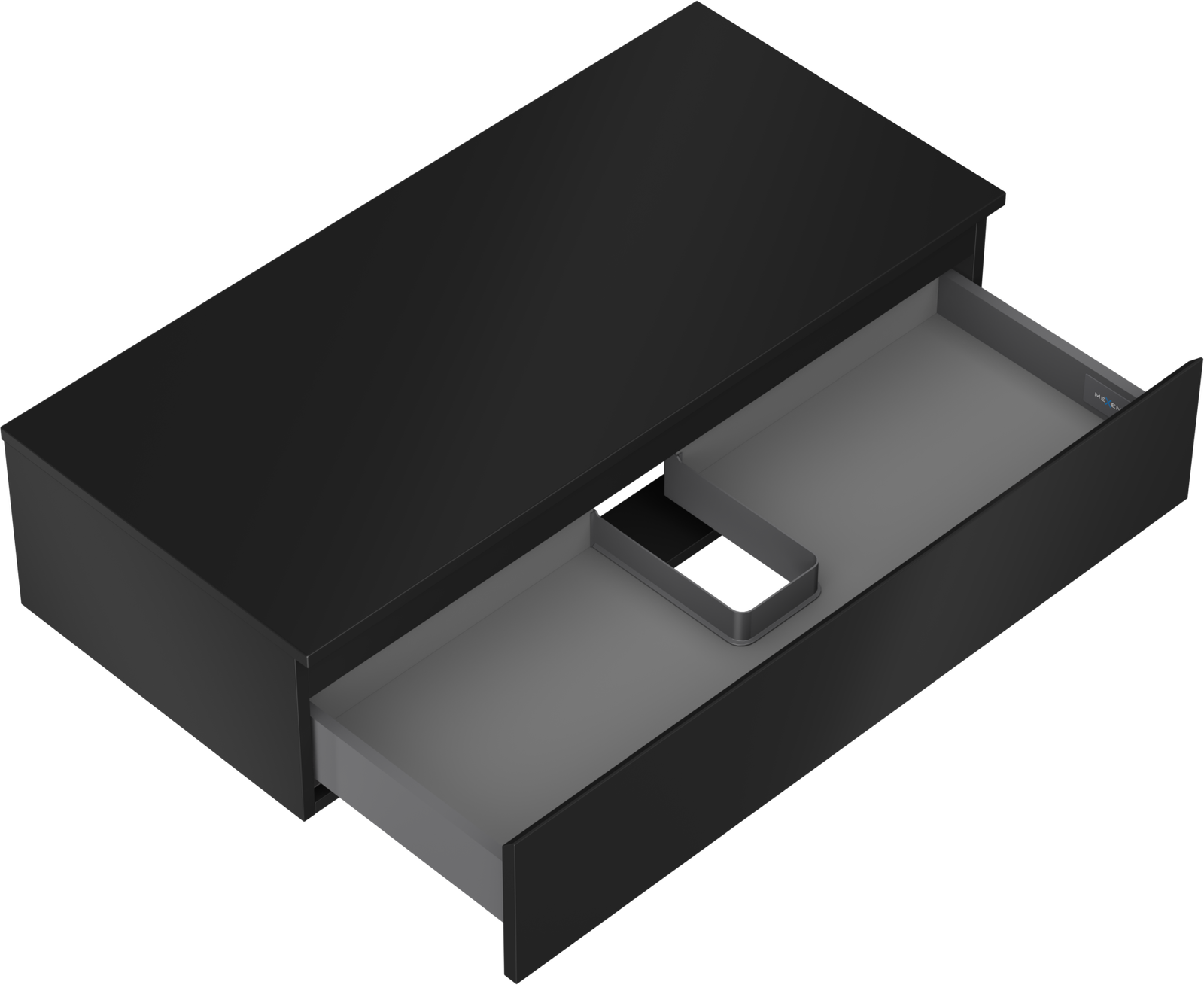 Изрезът в чекмеджето е проектиран по такъв начин, че да побере сифона, който е необходим в мивковите инсталации. Благодарение на това мебелът може да бъде монтиран напълно функционално, без да се налага отказване от пространството в чекмеджето заради инсталацията.
