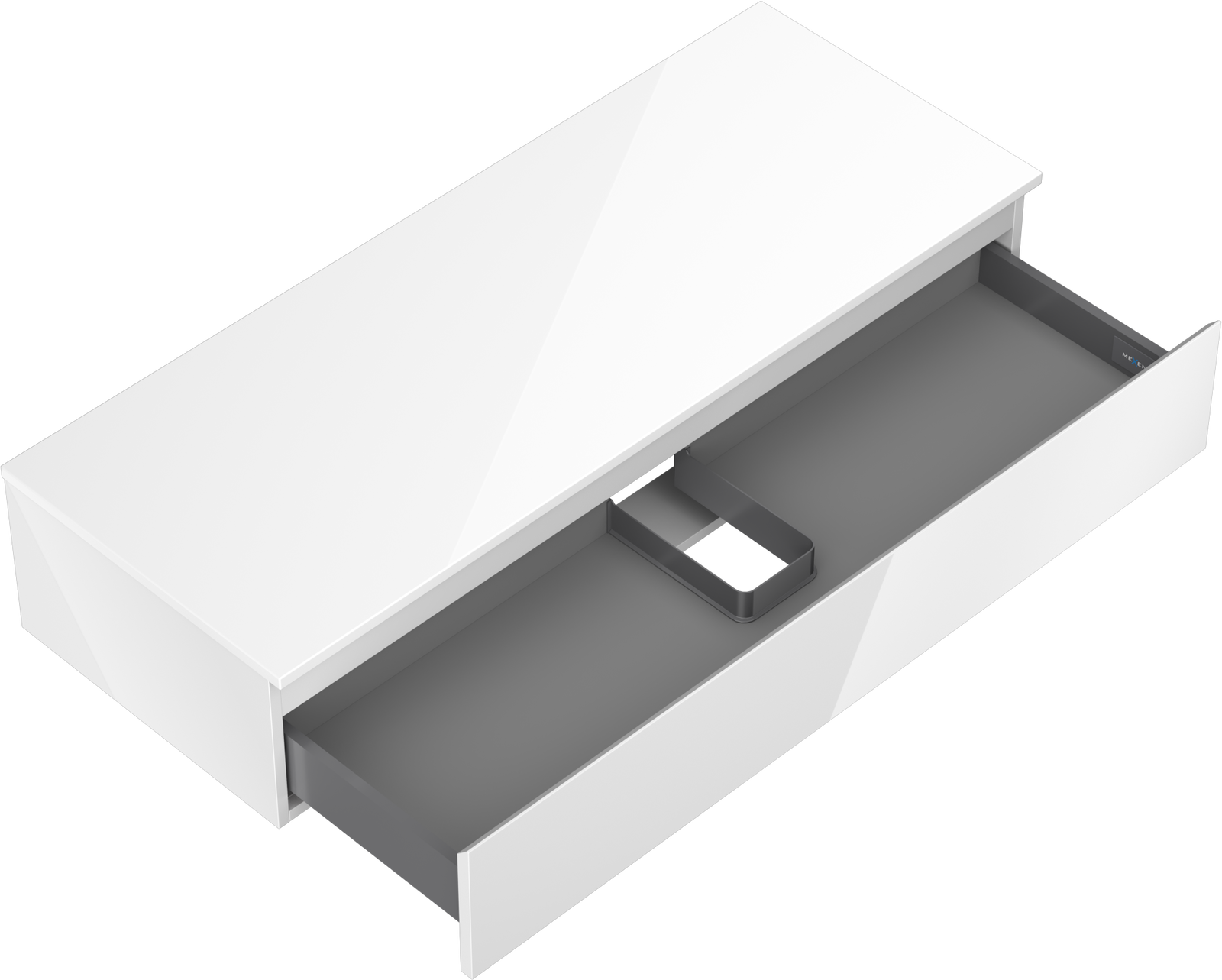 Изрезът в чекмеджето е проектиран по такъв начин, че да побере сифона, който е необходим в мивковите инсталации. Благодарение на това мебелът може да бъде монтиран напълно функционално, без да се налага отказване от пространството в чекмеджето заради инсталацията.