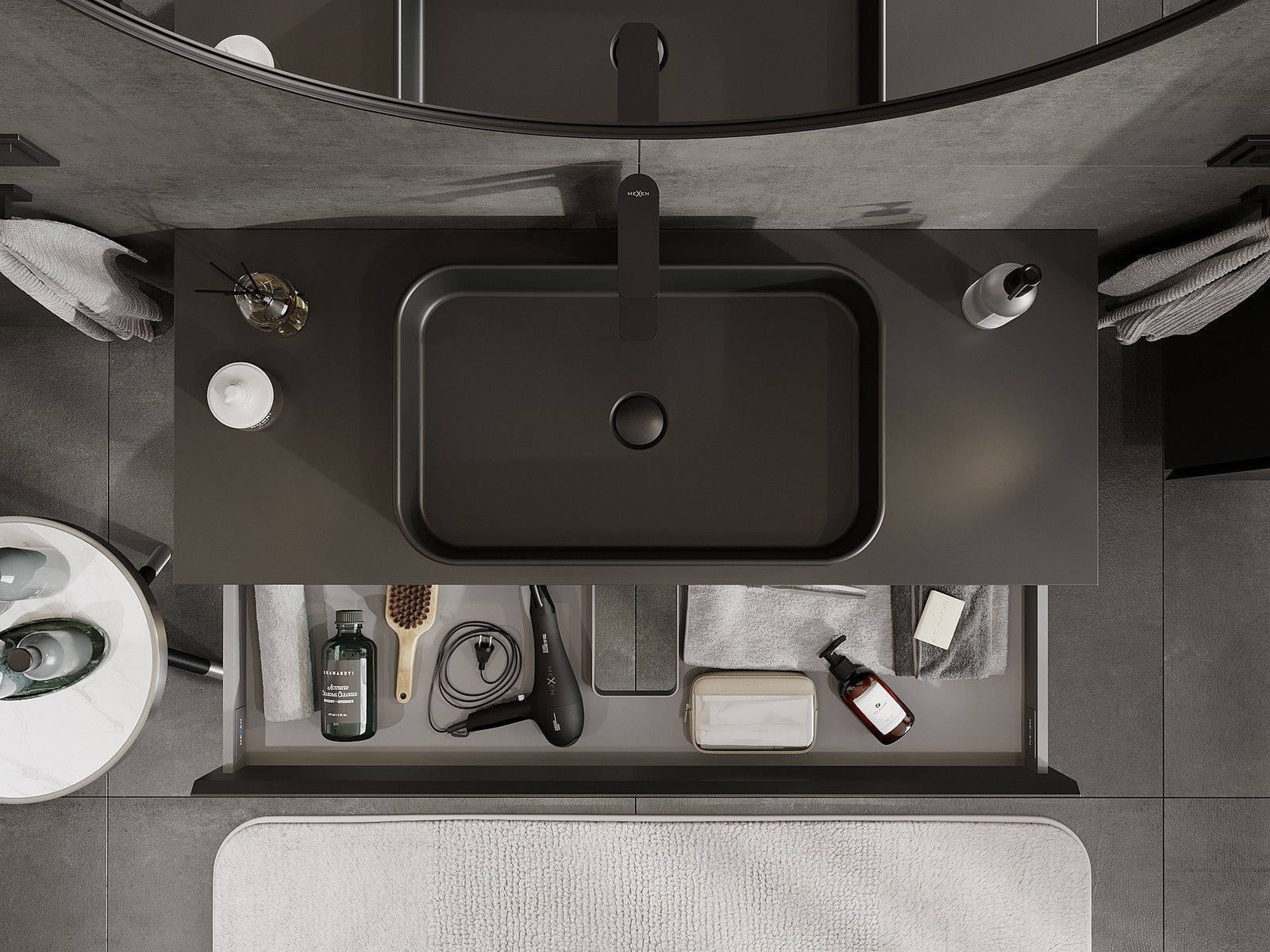 Изрезът в чекмеджето е проектиран по такъв начин, че да побере сифона, който е необходим в мивковите инсталации. Благодарение на това мебелът може да бъде монтиран напълно функционално, без да се налага отказване от пространството в чекмеджето заради инсталацията.