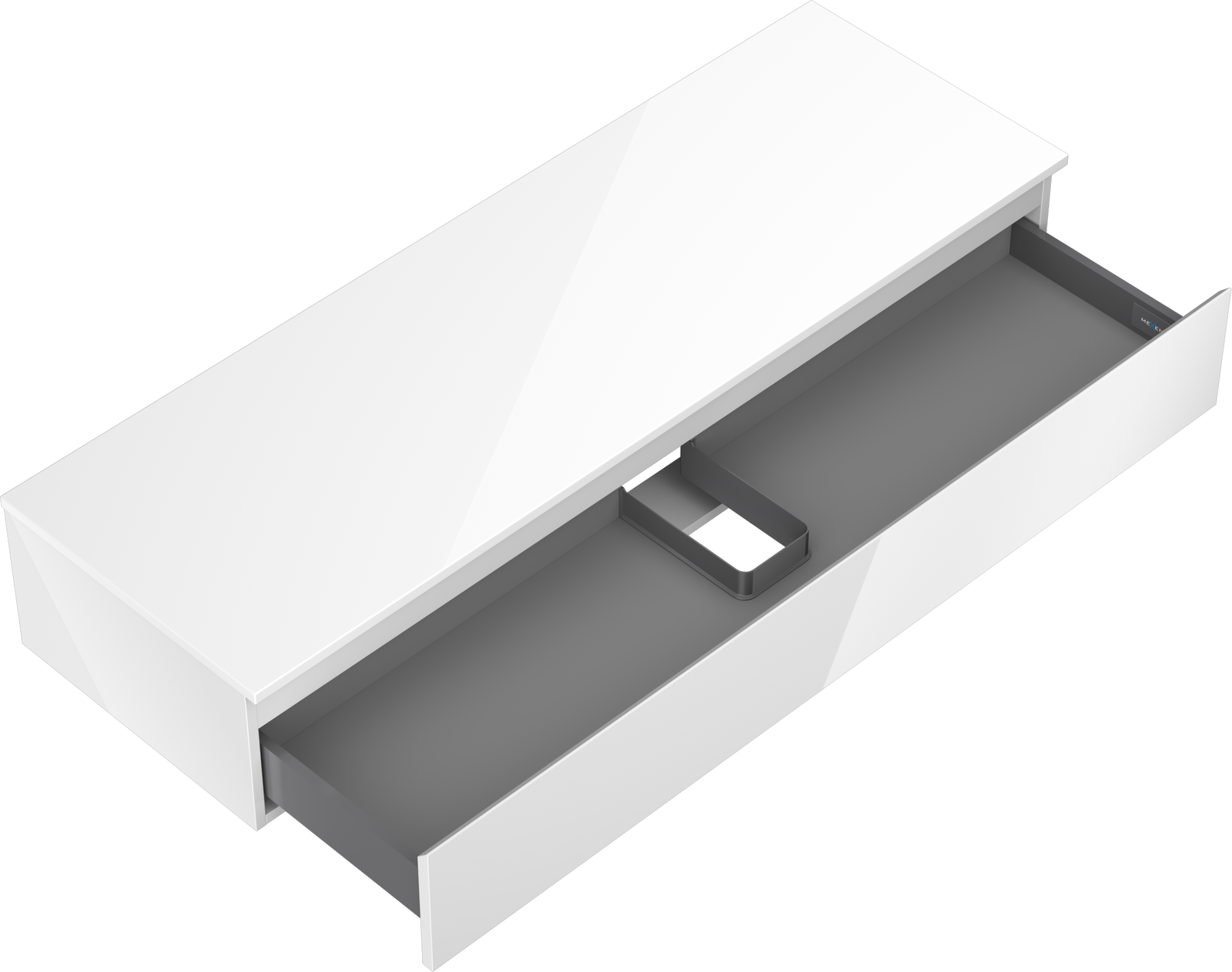 Изрезът в чекмеджето е проектиран по такъв начин, че да побере сифона, който е необходим в мивковите инсталации. Благодарение на това мебелът може да бъде монтиран напълно функционално, без да се налага отказване от пространството в чекмеджето заради инсталацията.