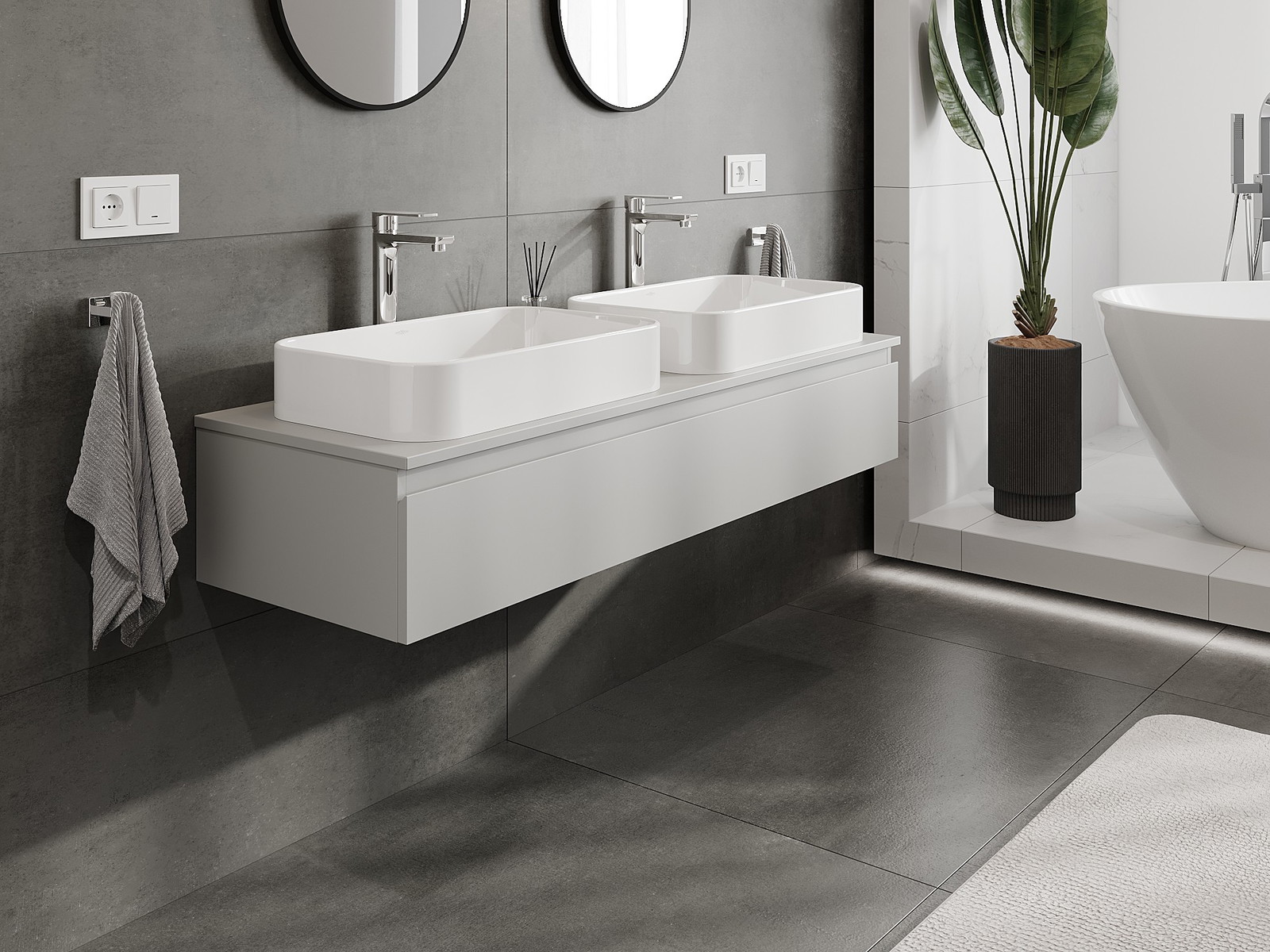 Нашите модулни мебели за баня могат да се комбинират в различни цветови конфигурации, което позволява пълна персонализация. Може да се избере както външният вид, така и функциите на отделните елементи, което позволява съчетаване на мебелите със собствените стилови и функционални предпочитания.