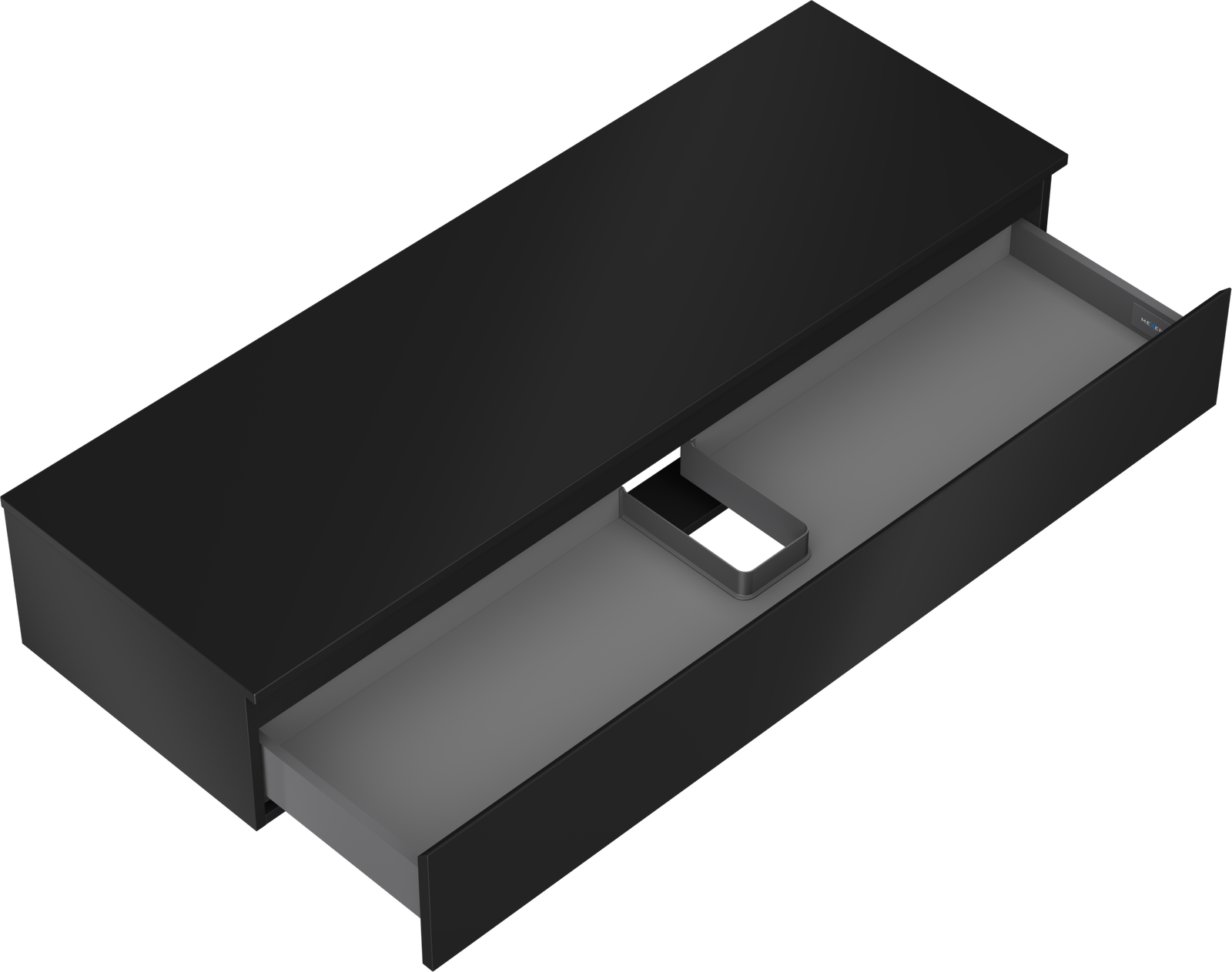 Изрезът в чекмеджето е проектиран по такъв начин, че да побере сифона, който е необходим в мивковите инсталации. Благодарение на това мебелът може да бъде монтиран напълно функционално, без да се налага отказване от пространството в чекмеджето заради инсталацията.