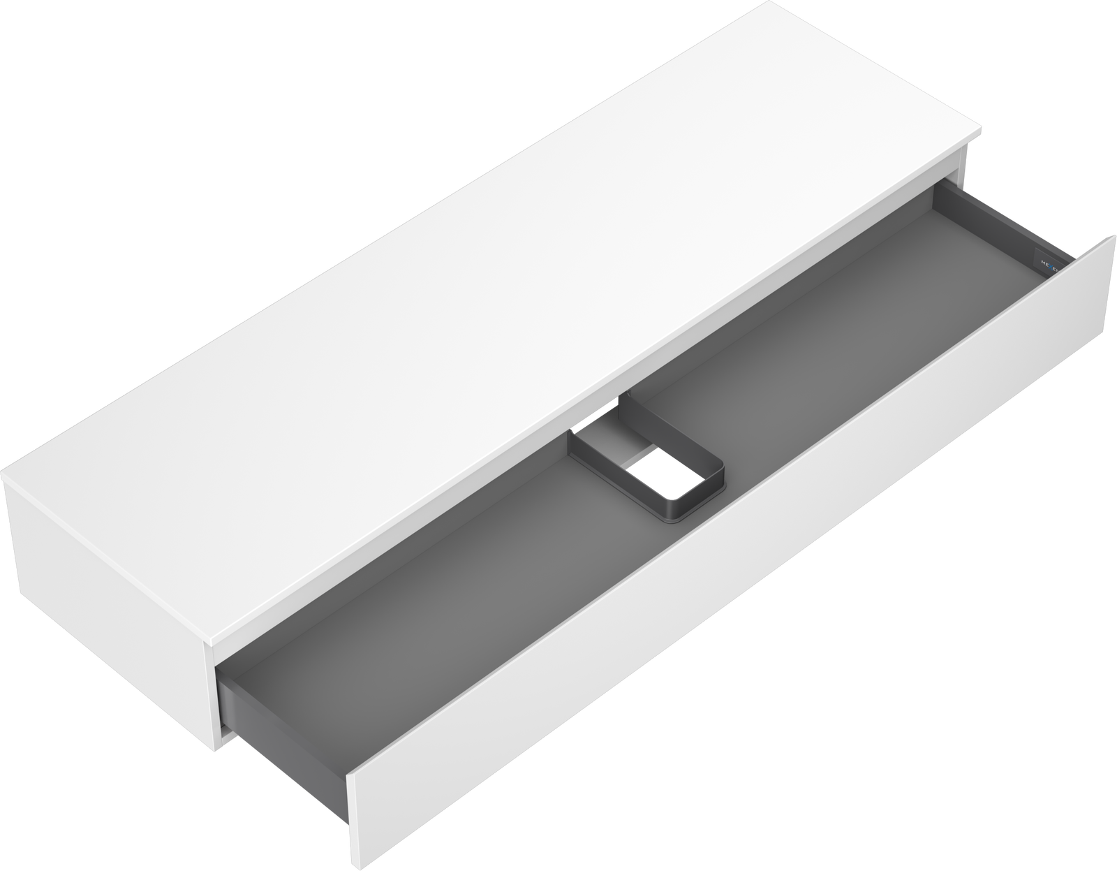 Изрезът в чекмеджето е проектиран по такъв начин, че да побере сифона, който е необходим в мивковите инсталации. Благодарение на това мебелът може да бъде монтиран напълно функционално, без да се налага отказване от пространството в чекмеджето заради инсталацията.