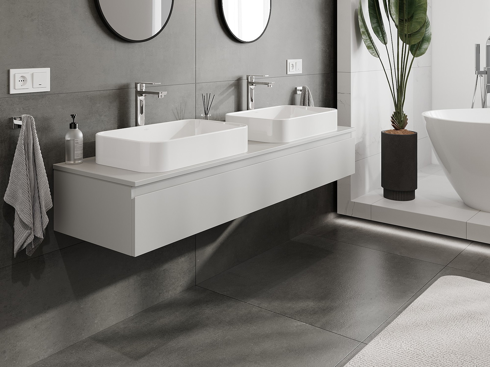 Нашите модулни мебели за баня могат да се комбинират в различни цветови конфигурации, което позволява пълна персонализация. Може да се избере както външният вид, така и функциите на отделните елементи, което позволява съчетаване на мебелите със собствените стилови и функционални предпочитания.