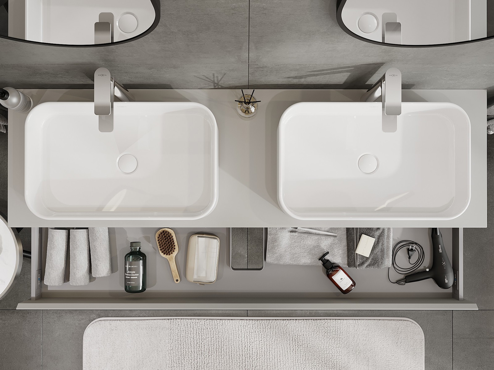 Изрезът в чекмеджето е проектиран по такъв начин, че да побере сифона, който е необходим в мивковите инсталации. Благодарение на това мебелът може да бъде монтиран напълно функционално, без да се налага отказване от пространството в чекмеджето заради инсталацията.