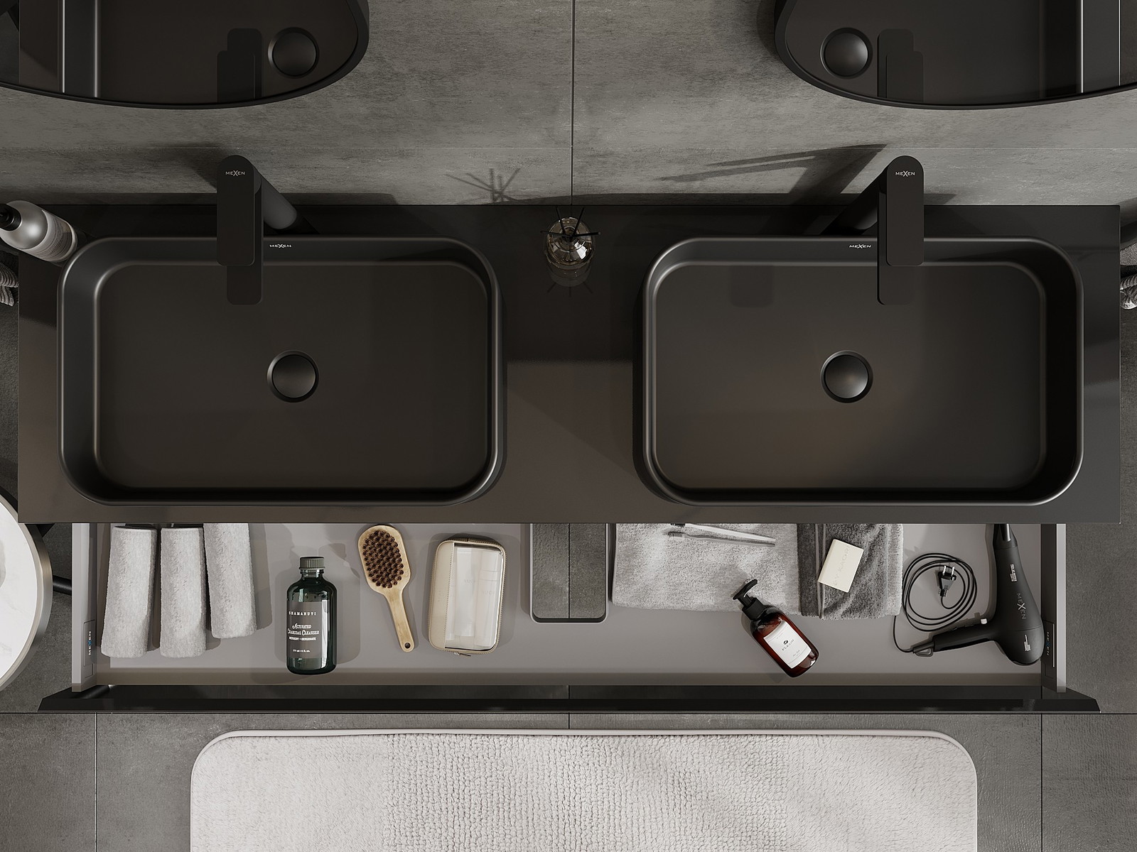 Нашите модулни мебели за баня могат да се комбинират в различни цветови конфигурации, което позволява пълна персонализация. Може да се избере както външният вид, така и функциите на отделните елементи, което позволява съчетаване на мебелите със собствените стилови и функционални предпочитания.