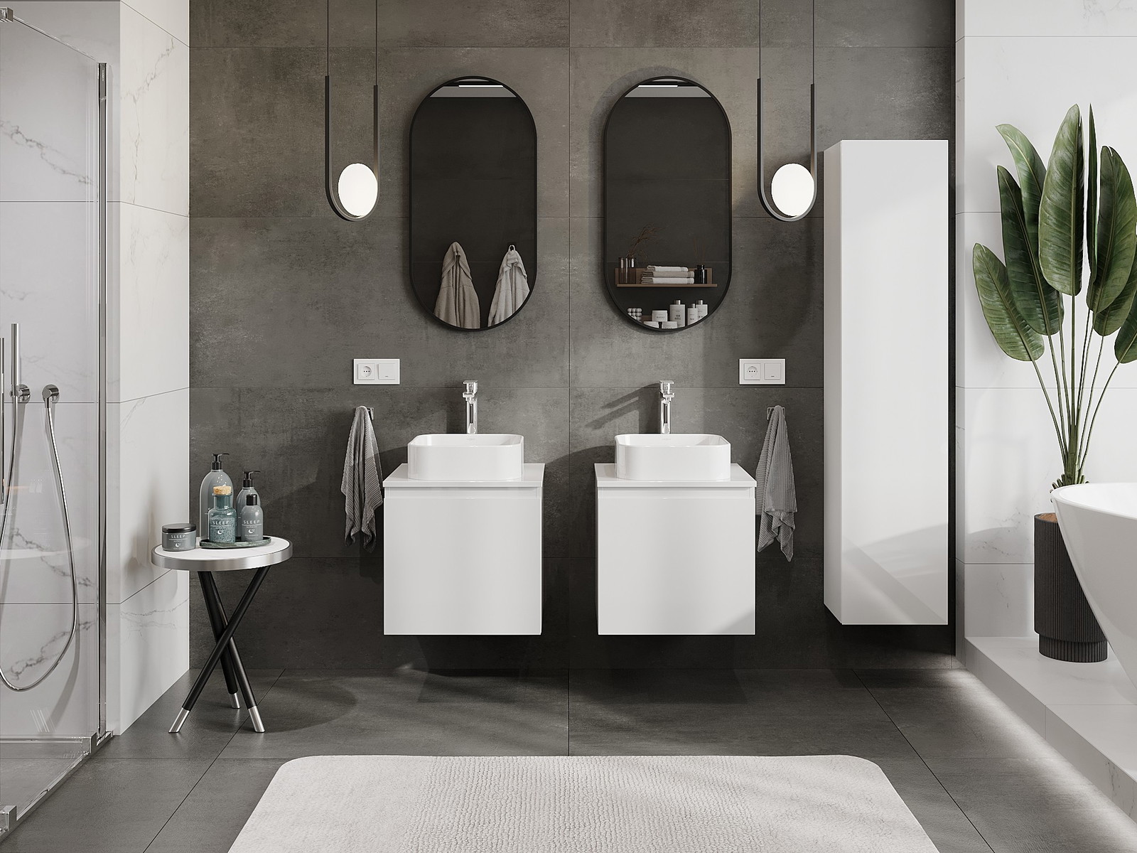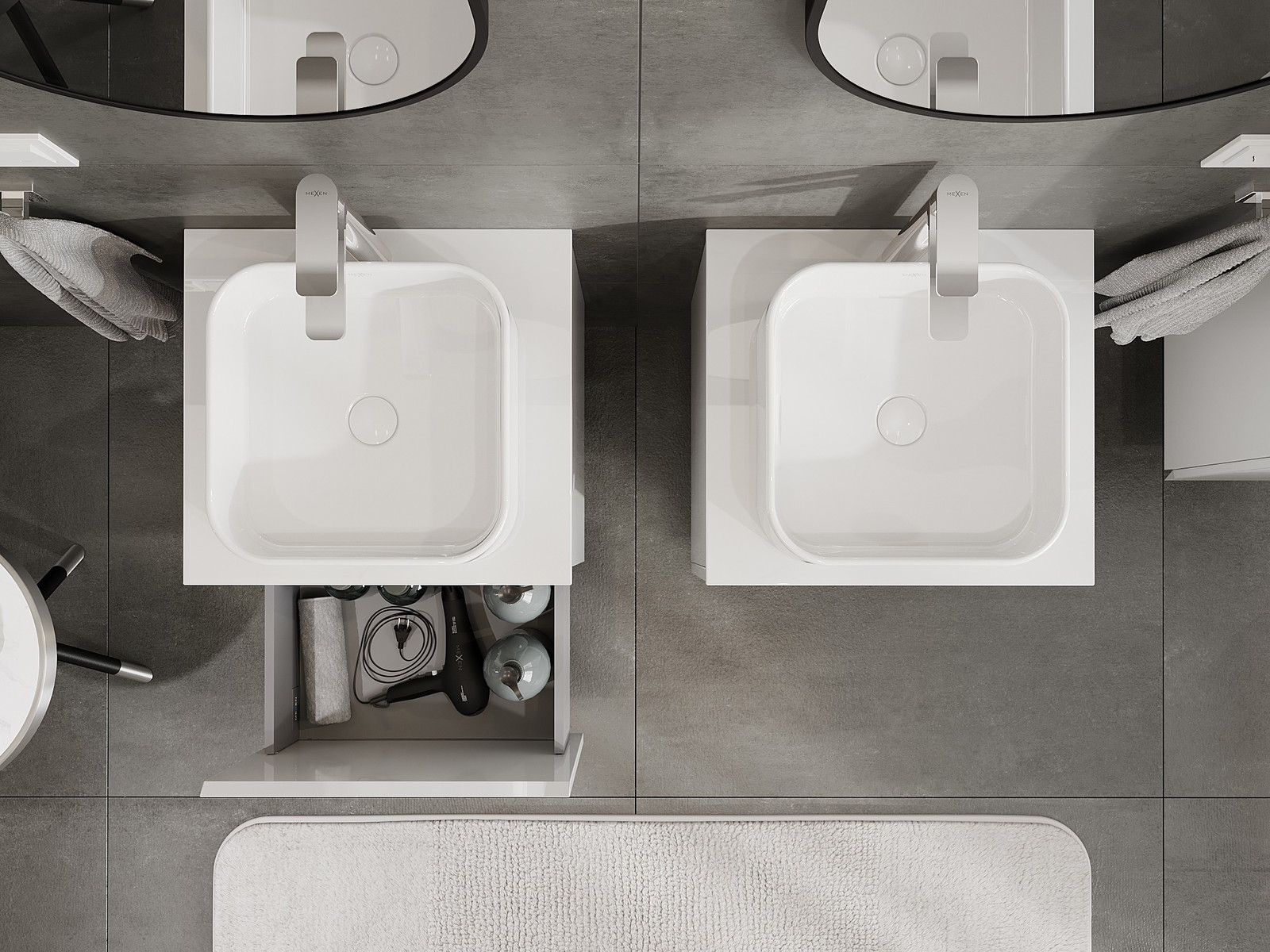 Нашите модулни мебели за баня могат да се комбинират в различни цветови конфигурации, което позволява пълна персонализация. Може да се избере както външният вид, така и функциите на отделните елементи, което позволява съчетаване на мебелите със собствените стилови и функционални предпочитания.