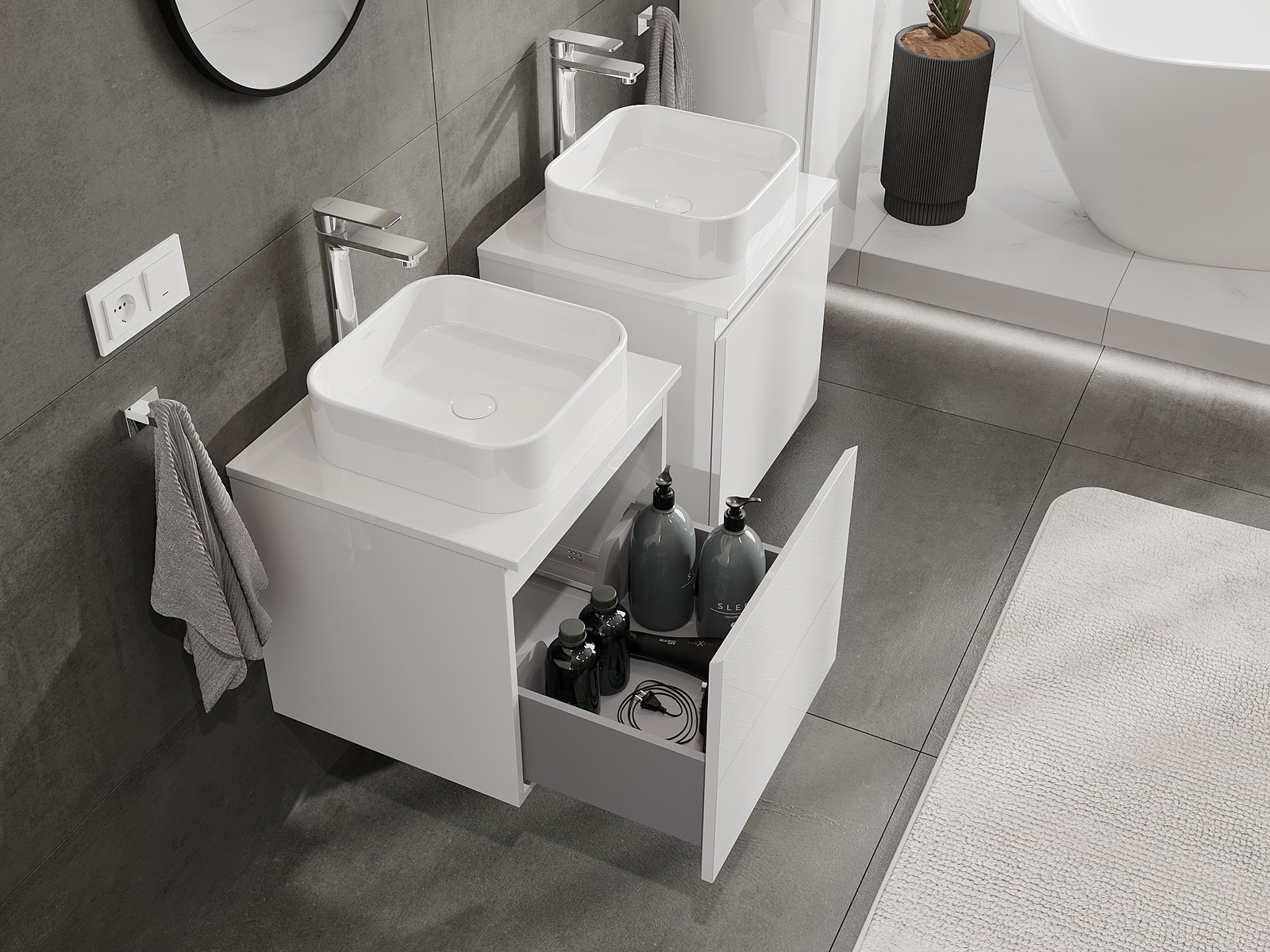 Mexen Orio шкаф за баня под умивалник 50 см с плот, 1 чекмедже, бял гланц - 91A10-05047-1-BFC00